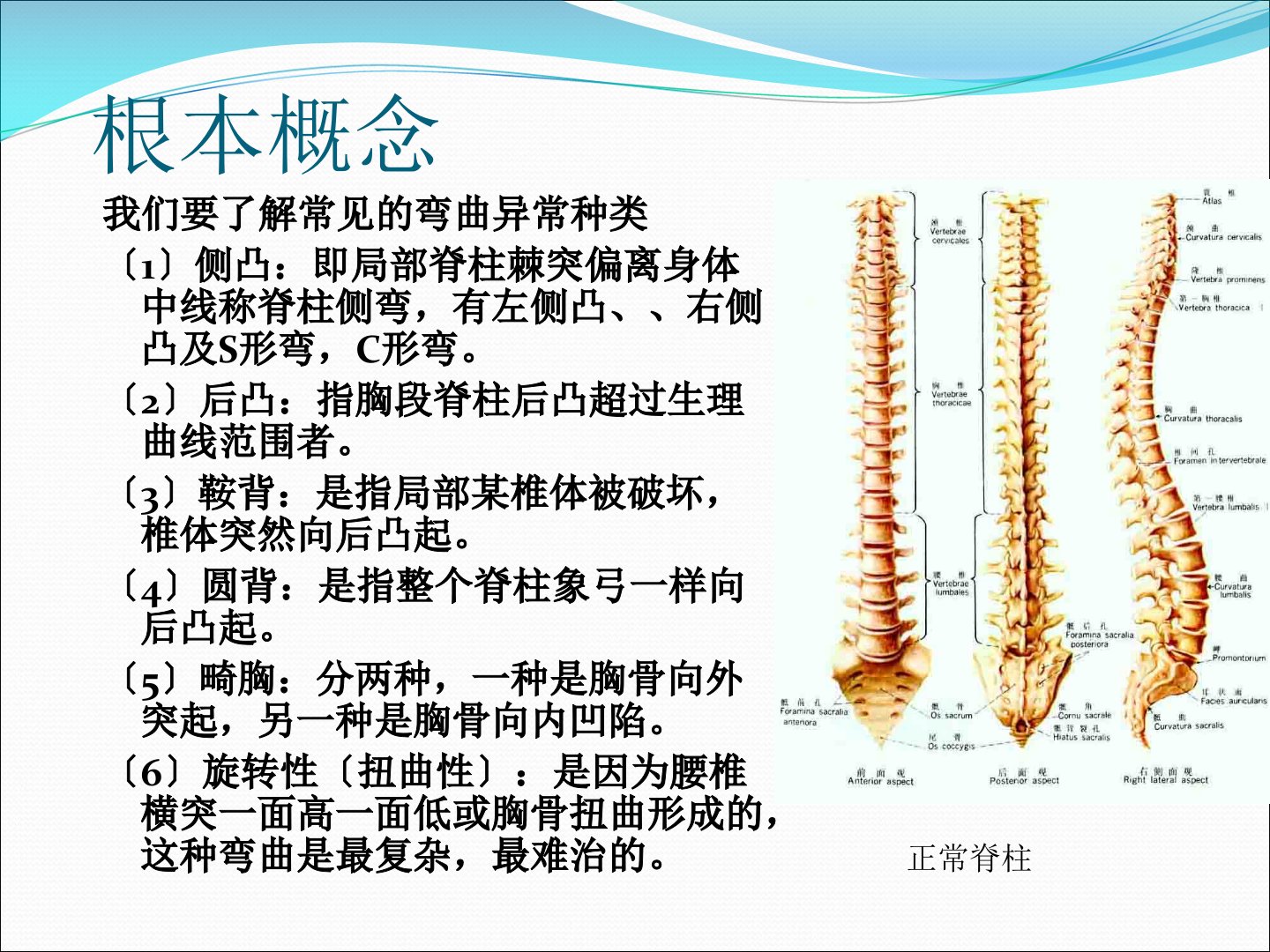 浅谈青少年特发性脊柱侧弯AIS摘要青少年特发性脊柱侧弯(AIS)是1116岁少年儿童中常见疾病病因复杂且未完全掌握但有明显的家族性和遗传性。弯曲异常种类包括侧凸、后凸、鞍背、圆背、畸胸和旋转性弯曲。弯度测定常用Cobb氏法椎体旋转度测定则依据正位X像上椎弓根位置。AIS发病原因有:1基因遗传因素AIS可通过母系遗传X染色体优势遗传方式扩散;2褪黑素等作用褪黑素在AIS发生发展中的作用尚不明确;3椎旁肌异常和椎体发育不平衡椎旁肌肌力失衡是IS发展的重要病因。AIS危害包括长期疼痛、限制性肺通气障碍、影响整体身体机能以及对心理健康的巨大影响。临床诊断包括病史询问、分子探针法、生物芯片应用及X光影像法。治疗方法有非手术性治疗手段如胸腰骶支具和手术治疗手段如前后路手术方案以及微创治疗技术和基因治疗。