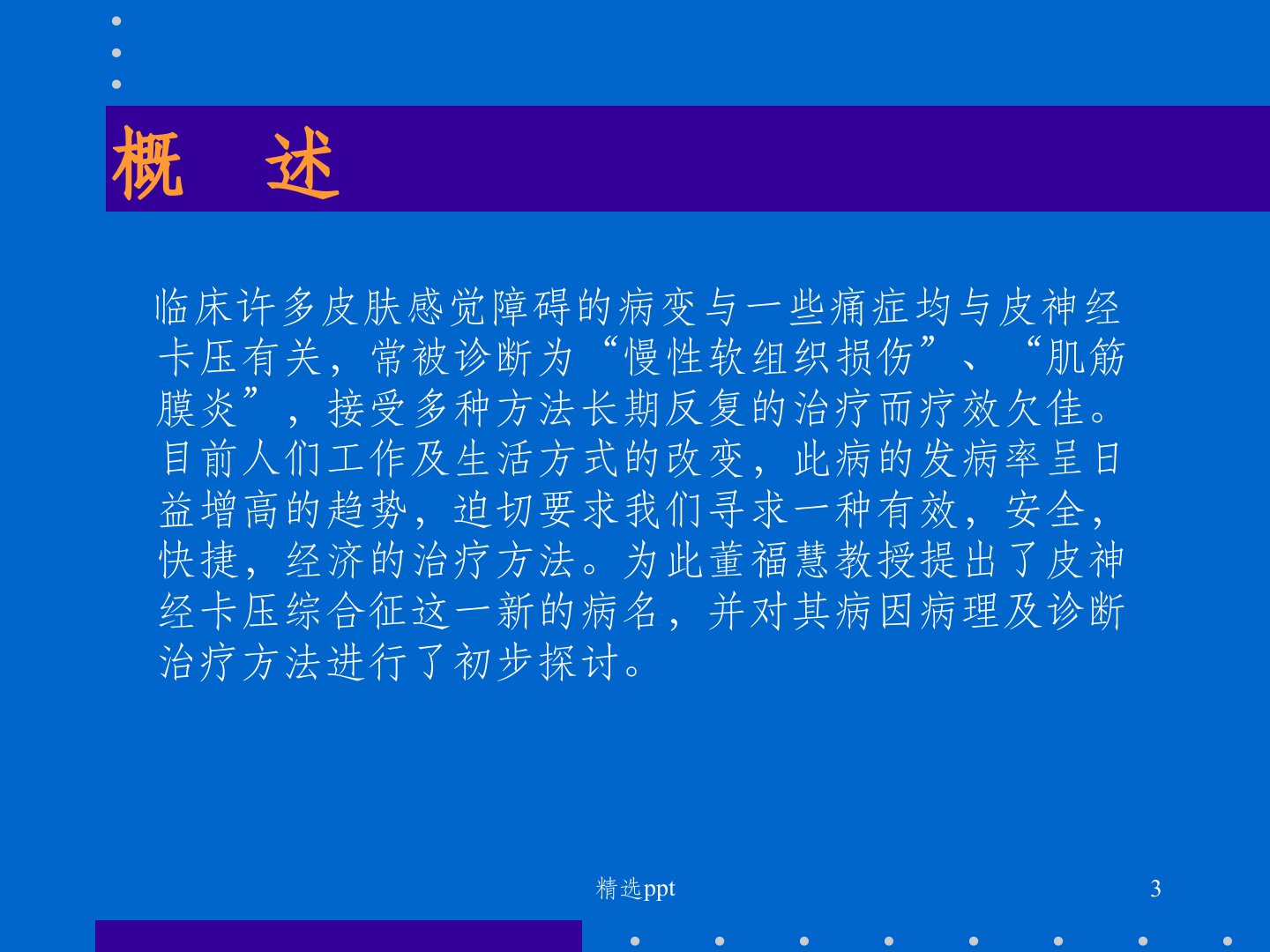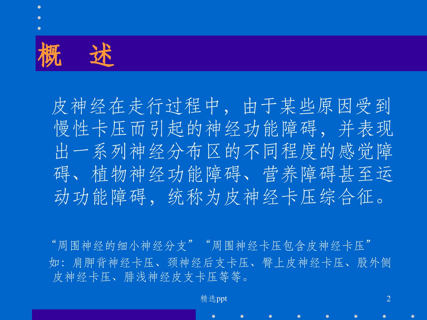 皮神经卡压综合征指皮神经在走行中因慢性卡压引发神经功能障碍表现为神经分布区的感觉、植物神经、营养甚至运动障碍。该病包含多种周围神经卡压类型如肩胛背神经卡压、颈神经后支卡压等。临床许多皮肤感觉障碍的病变与一些痛症均与皮神经卡压有关常被误诊为“慢性软组织损伤”等且长期治疗效果欠佳。随着工作及生活方式改变此病发病率增高董福慧教授提出了皮神经卡压综合征这一病名并对其病因病理及诊断治疗方法进行了初步探讨。病因方面皮神经卡压综合征可分为解剖性、全身性、姿势和职业性、应力集中、筋膜间室内高压等类型。病理过程包括局部缺血、结缔组织变化、有髓纤维瓦勒变性等。临床表现主要为局部疼痛或感觉异常肌肉紧张但不影响躯体运动。疼痛多为慢痛呈烧灼感定位较差持续时间久。好发部位多见于颈、肩、腰、背、臀或四肢关节的骨突部位。诊断依据临床表现、疼痛、Tinel征、电生理改变等。治疗关键在于减张减压方法包括保守疗法和手术疗法。颈肩部、腰臀部、胸背部及四肢皮神经卡压综合征各有其特点需根据具体情况进行诊断和治疗。