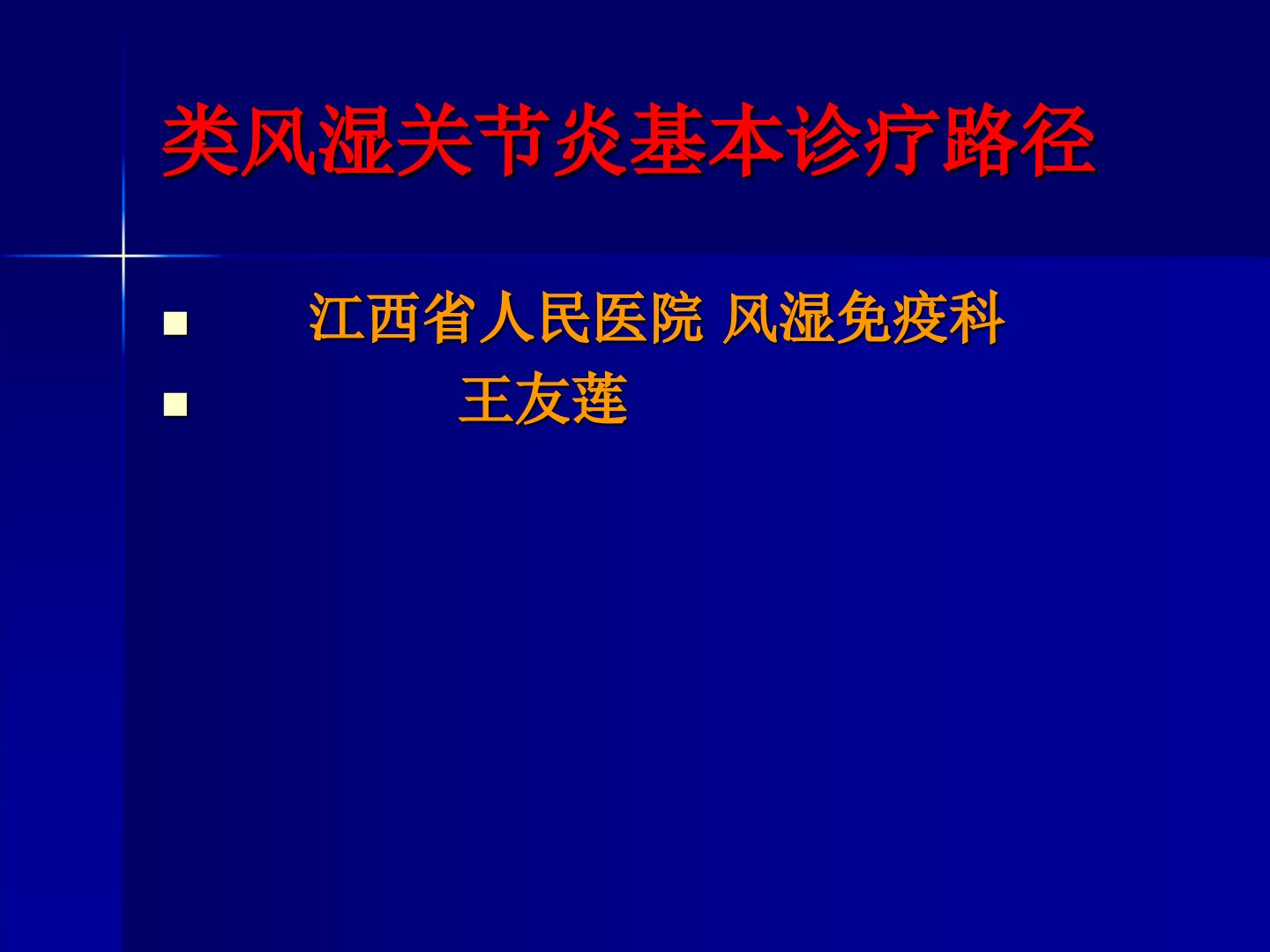 江西省人民医院王友莲医生阐述了类风湿关节炎(RA)及风湿病的诊疗路径。风湿病是影响骨、关节及其周围组织的一组疾病包括二十余种疾病。其临床表现多样包括发热、疼痛、皮肤症状、晨僵等且诊断复杂涉及多专业学科误诊误治发生率高。诊断方法包括病史体征检查、实验室检查(特别是自身抗体检测)、影像学检查和病理检查。RA是一种致残性高的系统性自身免疫性疾病病理特征为滑膜慢性炎症增生和关节软骨、骨质破坏。其流行病学特点为女性高发早期积极治疗可显著减少畸形发生。RA的发病机制涉及多因素免疫紊乱被认为是主要机制。其临床表现包括关节和关节外表现实验室检查包括必检项目和选检项目其中抗CCP抗体和RF对诊断有重要价值。在诊断标准方面1987年ACR标准存在不足2010年ACR与EULAR联合提出了新标准更有助于RA早期诊断。RA治疗原则包括健康教育、物理治疗和药物治疗等目标为降低疾病活动度达到临床缓解。药物选择包括非甾体抗炎药、慢作用抗风湿药物、皮质激素、植物药制剂和生物制剂等其中MTX为核心药物。对于难治性RA生物制剂是重要选择。出院标准包括关节疼痛缓解、关节外表现得到控制且无住院处理的并发症。