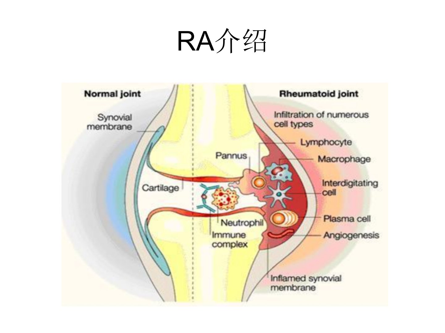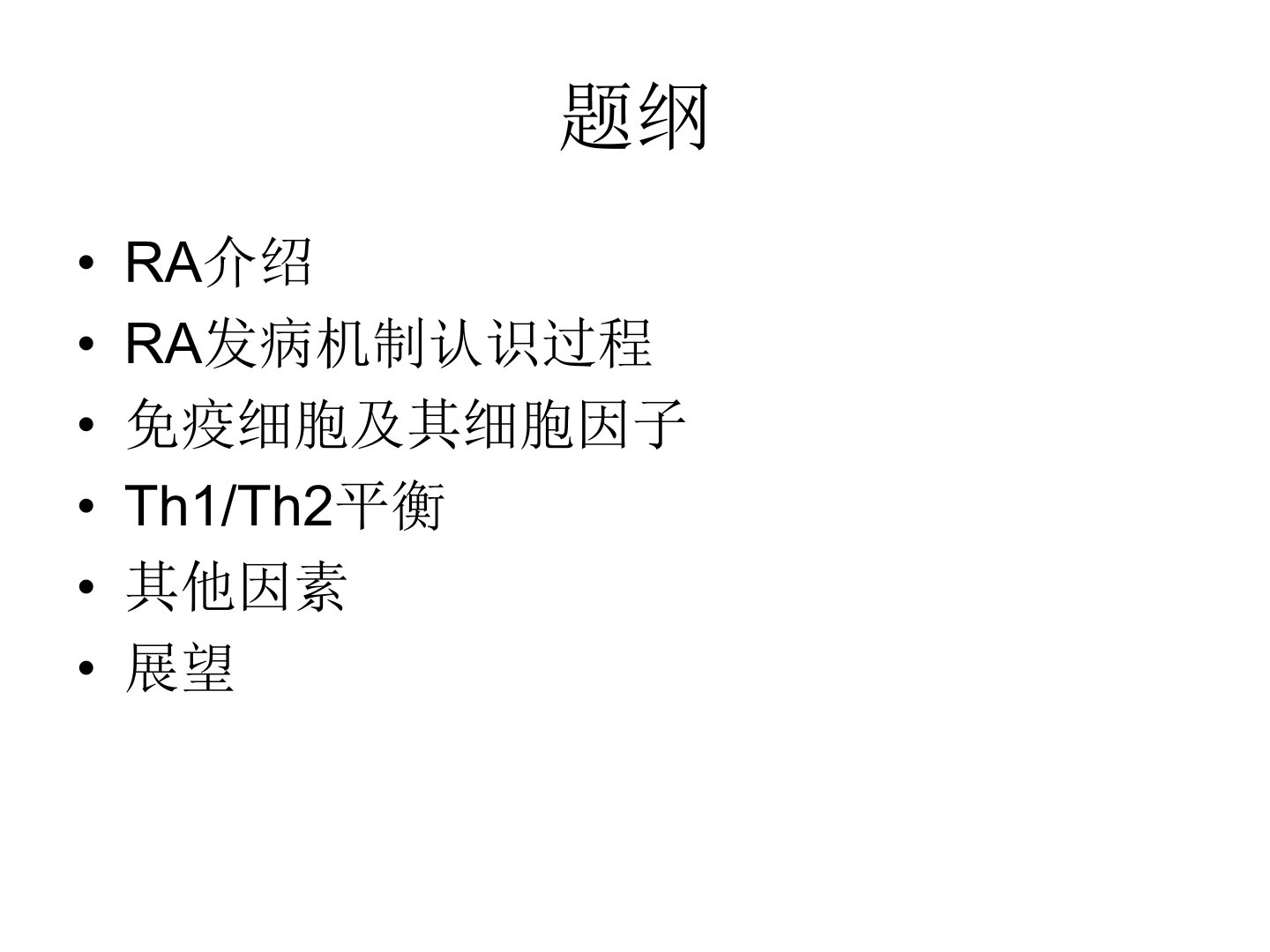 类风湿关节炎(RA)发病机制历经多阶段研究:20世纪20年代RA被视为感染性疾病;40年代发现类风湿因子和B细胞作用认定体液免疫异常为关键因素;80年代提出RA是由T细胞介导的自身免疫性疾病;后期发现成纤维样滑膜细胞具有转化的特性固有免疫作用被重视。RA发病机制涉及多种免疫细胞:T细胞高度表达相关物质吸引免疫细胞移动、浸润并发生炎症反应;巨噬细胞活化T细胞加剧炎症;B细胞产生免疫球蛋白和类风湿因子激活补体;中性粒细胞吞噬病原体是部分细胞因子的潜在起源。细胞因子在RA中变化复杂包括IFN、IL、TNF等。RA还存在Th1Th2平衡失调机制涉及外周耐受下调、CD28介导的信号转导途径缺陷等。此外钙蛋白酶、细菌病毒、遗传因素、性激素等也与RA有关。RA病因尚不明需进一步研究信号传导异常、Th1Th2平衡失调的治疗等。