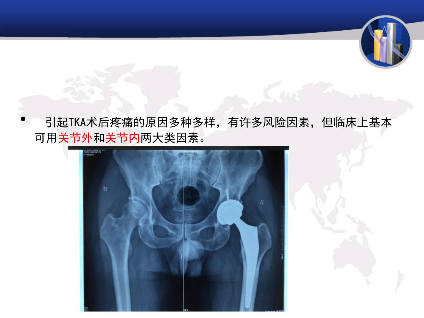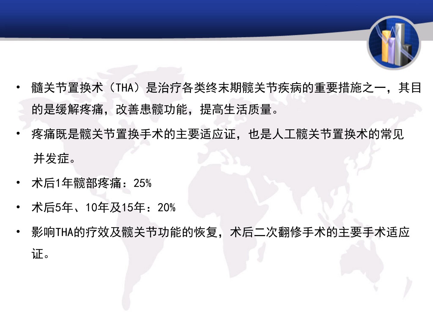 康复医学科夏玲医生2019年分析了髋关节置换术(THA)后疼痛的原因。THA是治疗终末期髋关节疾病的重要手段但术后疼痛是常见并发症影响疗效和功能恢复也是二次翻修手术的主要适应证。术后疼痛原因多样主要分关节外和关节内因素。关节外因素包括腰椎神经源性病变、神经血管性病变、外展肌或髂腰肌肌腱炎、转子滑囊炎、腹股沟疝或股疝、恶性肿瘤及异位骨化等。关节内因素则涵盖感染、假体无菌性松动、假体下沉或松动、假体周围骨折、假体安装或选择不当、金属过敏、软组织撞击及黏连等。诊断时需通过详细询问病史、仔细体格检查及完善辅助检查(如血检、X线、CT、MRI及关节腔穿刺)来综合分析疼痛原因。