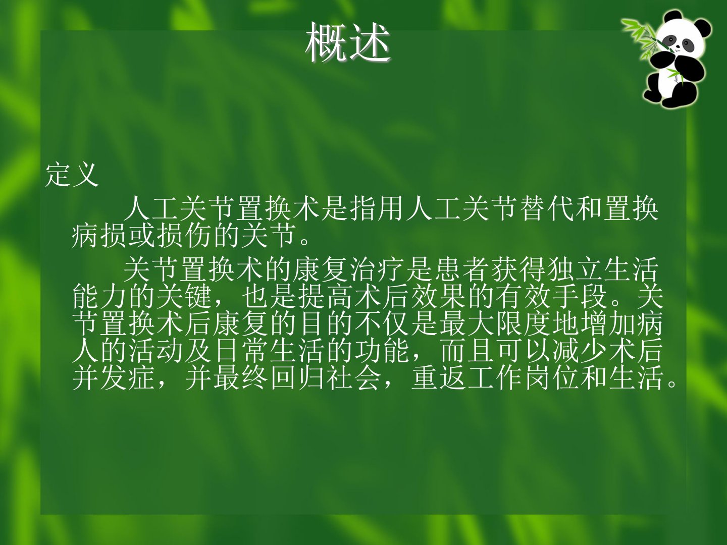 人工关节置换术是用人工关节替代病损关节其康复治疗是患者获得独立生活能力的关键。康复目的包括巩固治疗效果、恢复关节功能、维持关节稳定性、增强肌群力量、减少并发症、提高手术成功率和生活质量。康复训练需遵循个性化、循序渐进、局部与全身相结合的原则。术后康复需综合实施包括术前训练、体位指导、引体向上、床上排便、肌力锻炼、关节活动训练等。术后当天至一周的康复训练重点不同从垫软垫避免下肢外旋到踝关节主动屈伸、股四头肌等长收缩等一周后主要恢复关节活动度。凌宏月因先天性髋关节脱位术后功能障碍入院其康复也需遵循上述原则。注意事项包括正确使用拐杖、避免重体力活动、预防感染、减肥、避免特定动作出现患侧胀痛等情况时应及时就诊。