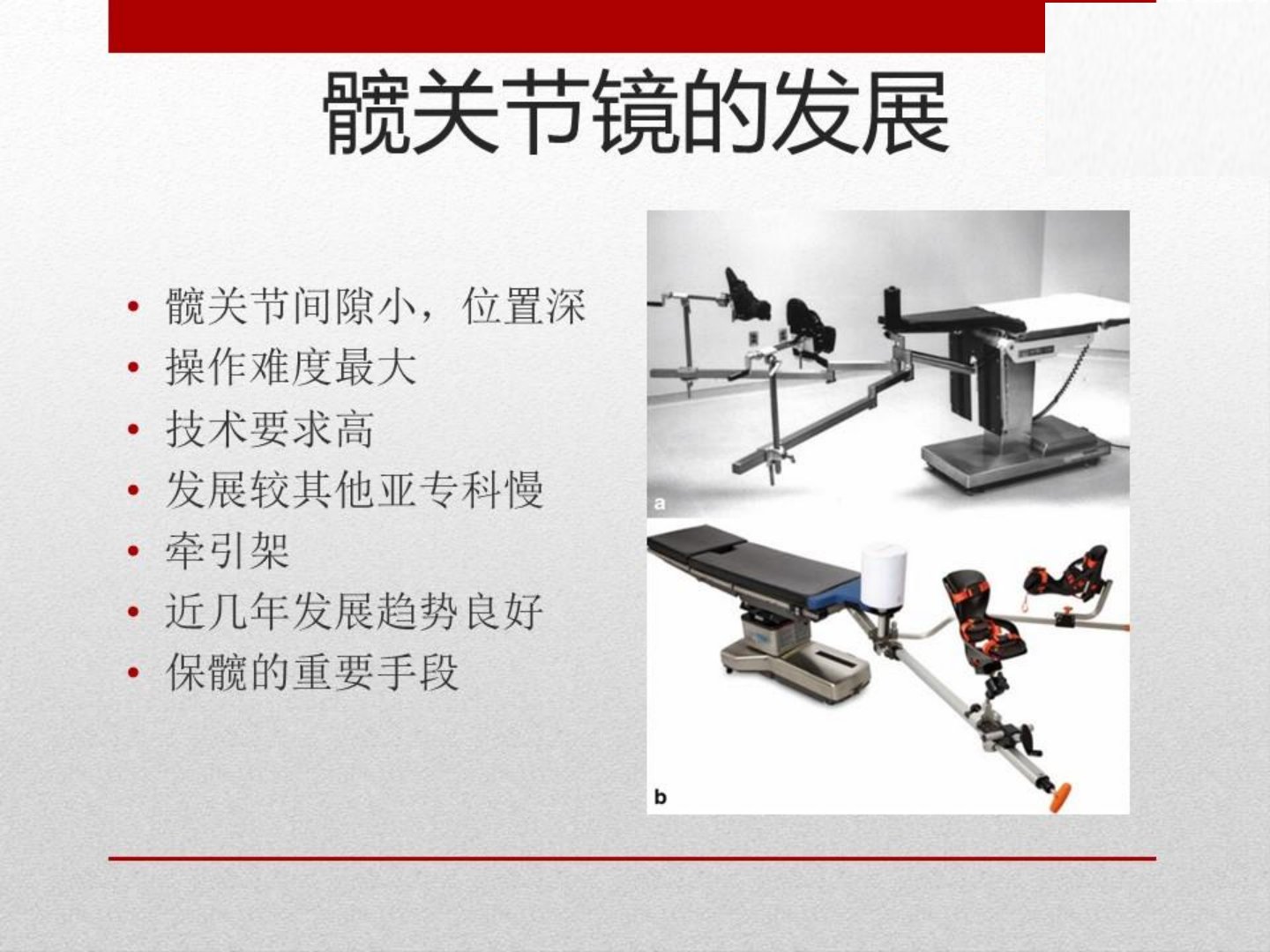 髋关节镜治疗髋部退变性疾病疗效分析摘要本研究聚焦髋关节镜治疗髋部退变性疾病的疗效。髋部退变性疾病是常见病症传统治疗方法存在一定局限性髋关节镜作为微创技术逐渐成为重要治疗手段。研究纳入多例髋部退变性疾病患者采用髋关节镜手术进行治疗。术后通过系列指标评估疗效如疼痛评分、关节活动度、功能恢复情况等。结果显示多数患者术后疼痛明显减轻疼痛评分较术前显著下降;关节活动度得到改善能更自如地进行日常活动;功能恢复良好生活质量有所提升。同时手术并发症发生率较低安全性较高。这表明髋关节镜治疗髋部退变性疾病具有显著疗效能有效缓解患者症状促进功能恢复且安全性有保障为髋部退变性疾病的治疗提供了新的有效选择。