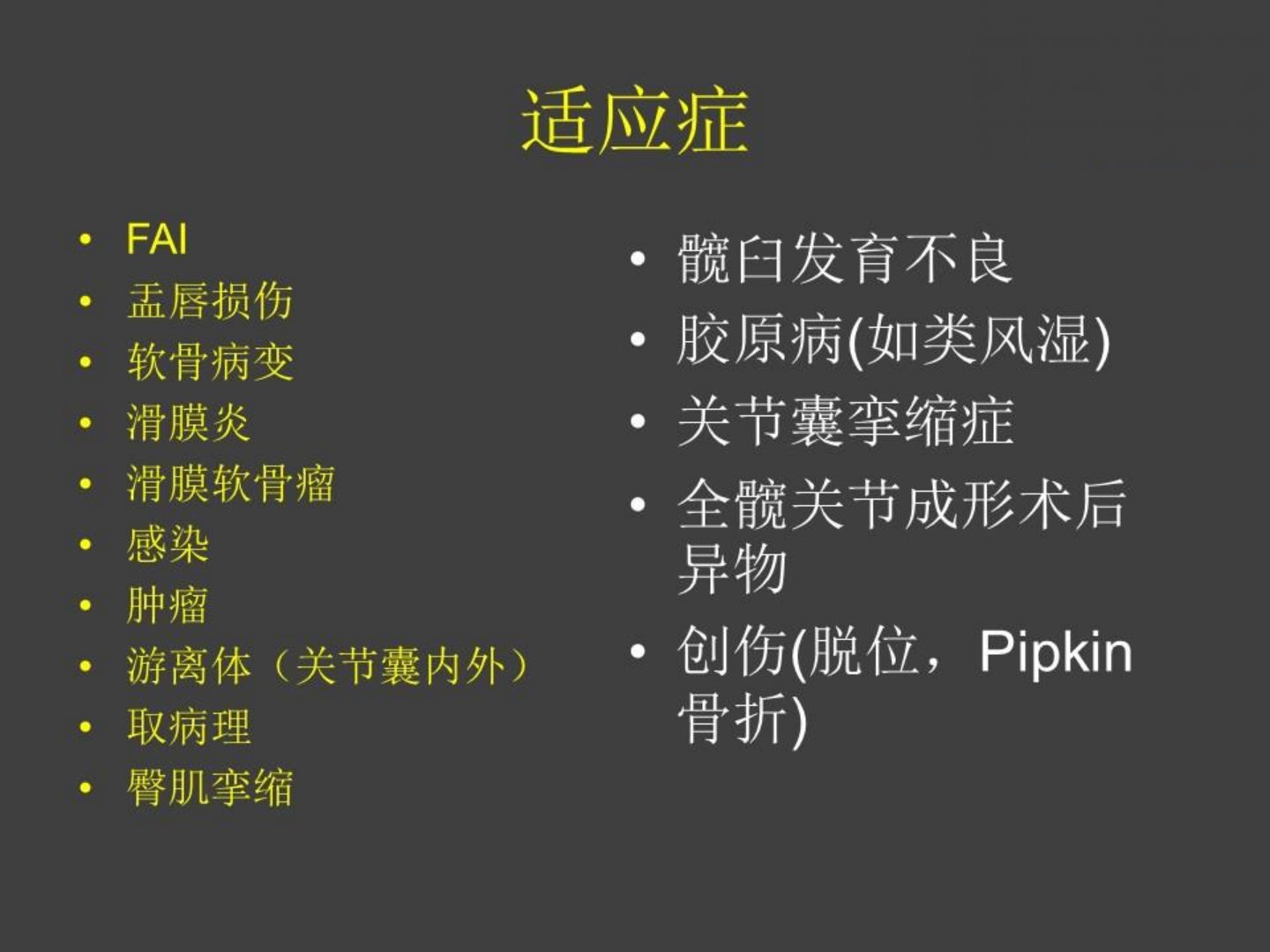 髋关节镜的临床并发症及预防摘要髋关节镜手术作为微创技术在治疗髋关节疾病方面应用广泛但也存在一定并发症风险。常见并发症包括神经损伤如坐骨神经、股神经等在术中可能受牵拉或压迫而受损导致感觉、运动功能障碍;关节内血肿多因术中止血不彻底或术后活动过早引发造成关节肿胀、疼痛;感染虽发生率低但后果严重可导致关节化脓性炎症;还有异位骨化术后在关节周围出现异常骨形成影响关节活动度。预防并发症至关重要。术前需全面评估患者身体状况排除手术禁忌证。术中操作要精准、轻柔避免过度牵拉神经彻底止血。术后严格遵循医嘱进行规范康复训练控制活动强度与时间。同时做好伤口护理保持清洁干燥降低感染风险。通过综合预防措施可有效减少髋关节镜手术并发症的发生。