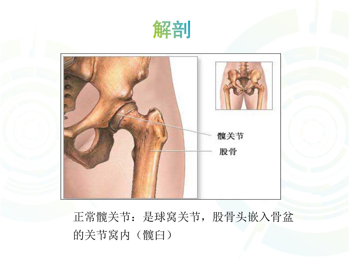 髋关节骨性关节炎是骨科常见病特点是关节软骨变性软骨下及关节周围有新骨形成也被称为肥大性、增生性、老年性、退行性关节炎或骨关节病。该病分原发性和继发性两类前者原因不明多见于50岁以上肥胖者预后较好;后者由髋部发育不良、骨折脱位等病变引起发病年龄轻预后较差。疾病症状包括疼痛、僵硬和功能障碍早期可能无明显体征严重时有畸形和压痛。X线可显示关节软骨脱落、硬化等。治疗包括非手术治疗(如药物、减轻体重、理疗)和手术治疗(如髋关节固定术、截骨术、髋关节置换术)。术前需评估患者情况进行心理护理控制并存病并指导病人进行术前锻炼。术后要密切观察生命体征保持伤口清洁预防并发症并进行功能锻炼。出院后患者需注意不负重、不侧卧、不下蹲及时控制炎症和血糖并按时复查。