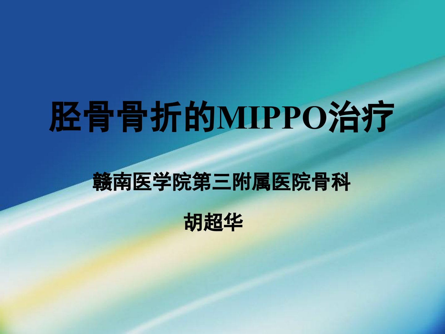 胫骨骨折是常见长管状骨折占比达全部骨折病例的13左右。赣南医学院第三附属医院骨科胡超华介绍了其解剖、病因、临床表现(包括外伤史、疼痛、肿胀、功能障碍等)、诊断标准(病史、症状、体征、影像学)及骨折分型。胫骨干骨折早期用牵引治疗后逐渐采用钢板治疗但早期AO原则存在弊端。1997年提出MIPPO技术即经皮微创接骨板接骨术理念是内固定支架桥接可维持骨折端相对稳定性保护软组织及血运降低螺钉断裂几率利于早期功能锻炼适合粉碎性、骨质疏松老年病人。MIPPO治疗中LCP理想长度取决于接骨板跨越长度和螺钉密度。粉碎性骨折区两边各三枚螺钉足够稳定简单骨折且间隙小应闲置邻近骨折端12个钉孔。接骨板末端两孔必须置钉锁定螺钉应和普通螺钉联合使用。病例显示MIPPO技术可避免并发症术后早期康复利于骨折愈合。