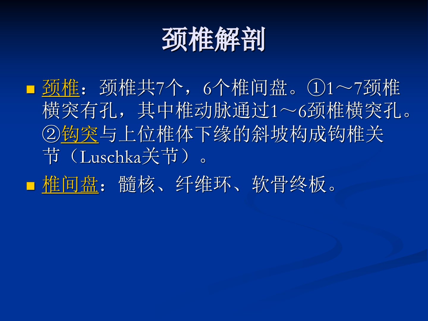 颈椎相关结构及病症机制、表现如下:1颈椎结构:7颈椎横突有孔供椎动脉通过16颈椎横突有孔;钩突与上位椎体下缘斜坡构成钩椎关节;椎间盘由髓核、纤维环、软骨终板组成;颈神经根共8对C1在枕骨与环椎间穿出C8在C7和T1间穿出。2病症及机制:颈神经根:因颈椎间盘侧后方突出等刺激压迫出现颈肩痛伴上肢放射痛等症状体检有臂丛牵拉试验等阳性辅检有X线片等。颈脊髓:后突髓核等引起髓外压迫或血管受压致脊髓血供不足出现下肢发麻等症状体检有下肢肌张力增高等辅检有CT等。椎动脉:因横突孔等增生狭窄等引起供血减少出现眩晕等症状体检有椎动脉扭转试验辅检有X线片等。颈交感神经:机制不祥受压或颈椎失稳时交感神经型体检可见颈椎不稳。