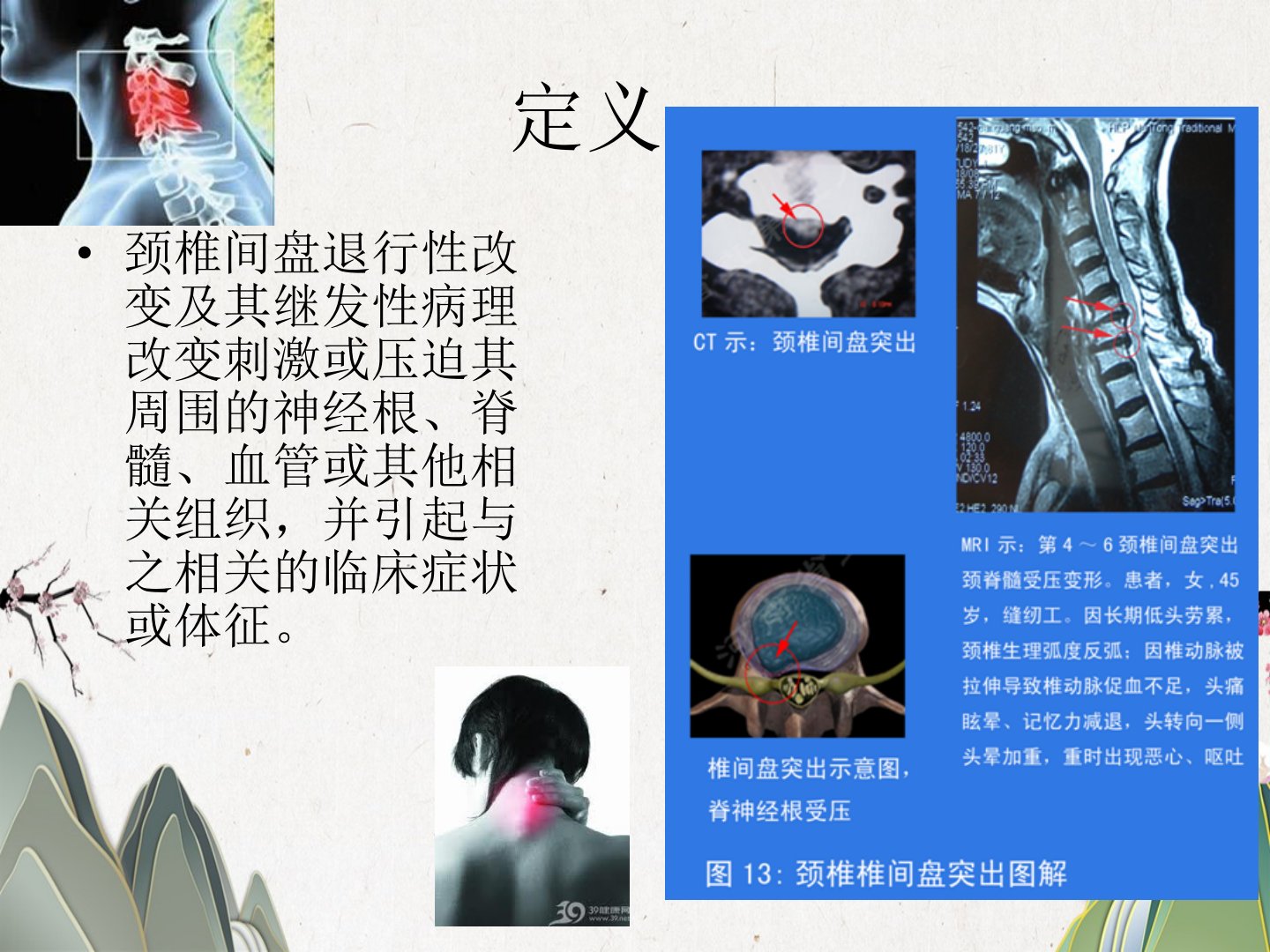 颈椎病健康教育摘要颈椎病是颈椎间盘退行性改变及其继发病理改变刺激或压迫周围组织引发的症状。其骨性结构包括七个椎体、六个椎间盘及临近结构。病因有内因(退行性变、椎管狭窄、畸形)和外因(受凉、疲劳、不良姿势)。颈椎病分型多样:神经根型发病率最高症状包括颈肩痛、上肢放射痛、感觉异常等;椎动脉型以眩晕为主还伴有头痛、猝倒等症状;脊髓型主要是脊髓受压表现为四肢乏力、行走不稳后期需手术;交感神经型症状复杂发病机制尚不明确;混合型则同时存在两型或以上症状。诊断需综合症状、体格检查、影像学等资料。治疗包括理疗、药物、牵引、手术等多种方式。预防上要改正不良姿势保持良好睡姿避免损伤和受凉注意用电脑姿势并加强颈部锻炼。