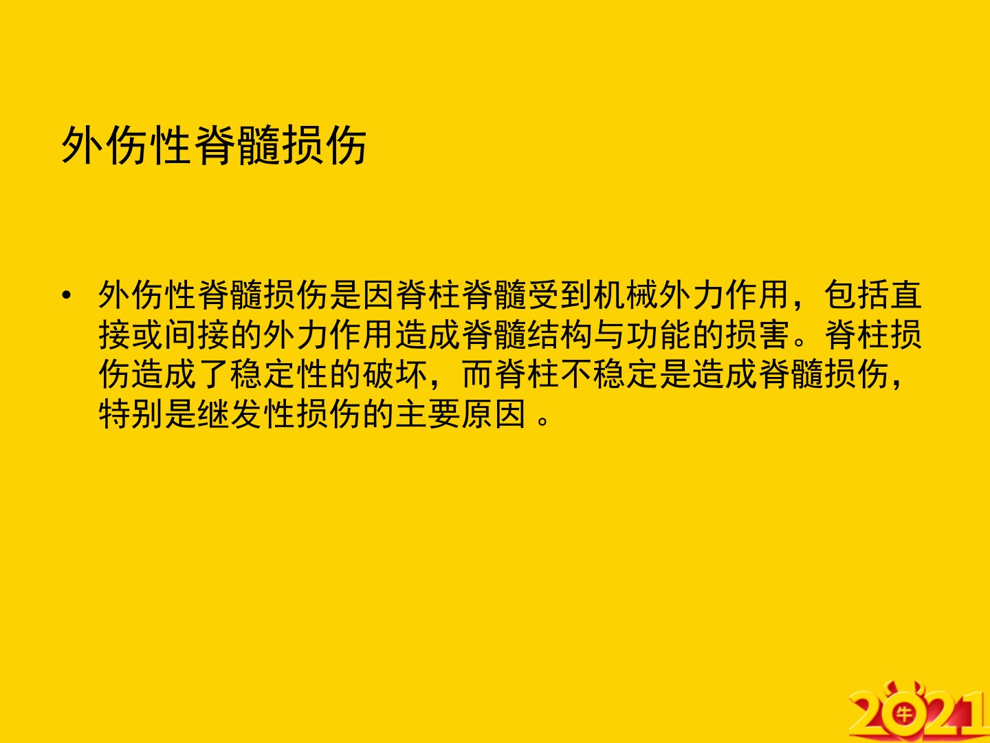 颈脊髓损伤个案分析摘要本文详细分析了一例颈脊髓损伤患者的个案。颈脊髓损伤病因分为外伤性和非外伤性前者多因脊柱脊髓受机械外力致结构与功能损害脊柱不稳定是继发性损伤主因;后者包括发育性病因如脊柱侧弯、脊椎裂等和获得性病因如感染、肿瘤等。颈脊髓损伤程度分脊髓震荡、不完全性和完全性脊髓损伤三类。患者刘秋花52岁女性因高处坠落伤急诊入ICU伤情严重包括头面部出血、四肢瘫痪等经多次手术治疗。护理评估涵盖一般情况、社会情况、疾病史等多方面显示患者对疾病知识了解欠缺家庭经济状况尚可配合医护人员治疗。病因生理病理分析指出外伤性病因包括交通事故、高空坠落等非外伤性病因有脊柱病理性骨折等。病理上脊髓损伤可呈暂时性功能抑制或部分、完全横断。临床表现因损伤部位而异诊断依赖MRI等检查。治疗包括全身治疗维持循环血容量等、药物治疗如肾上腺皮质激素等、非手术治疗如佩戴颈围领等和手术治疗。术后需密切观察预防并发症。护理方面针对疼痛、体温过高、感染危险等问题制定护理计划通过宣教、观察、体位调整等措施助患者缓解症状、预防并发症、恢复生活自理能力同时进行健康教育提高患者对疾病认知和自我护理能力。