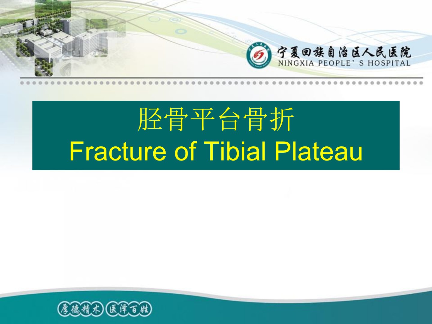 胫骨平台骨折即胫骨髁骨折指胫骨髁上端与股骨髁关节面相对应的平滑骨面处的骨折。胫骨内侧平台较大且呈凹型外侧平台较小且高于内侧面。该骨折较为常见约占成人骨折的19多由高能量损伤导致约4060为道路交通事故损伤损伤机制包括直接暴力和间接暴力。临床分型包括AO分型、Schatzker分型(重点包括外侧劈裂、外侧劈裂并压缩等多种类型)和三柱分型。临床表现包括疼痛、肿胀、下肢不能负重等体征有膝关节活动受限、触痛阳性等可通过XRay、CT、MRI等影像学检查确诊需与股骨髁部骨折、髌骨骨折鉴别。治疗目的是恢复关节面的平整等方法包括保守和手术治疗需考虑多种因素。术后需抗炎、脱水、补液观察引流并功能锻炼。并发症包括再次移位、血栓形成等。预后取决于损伤程度、治疗方法等。