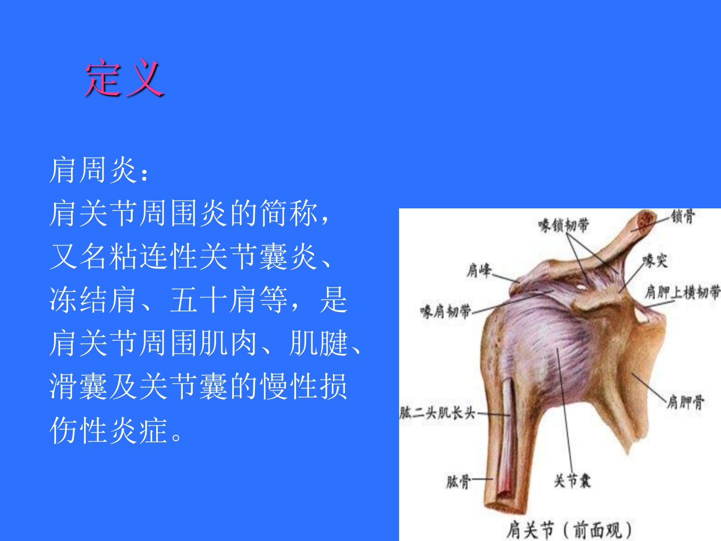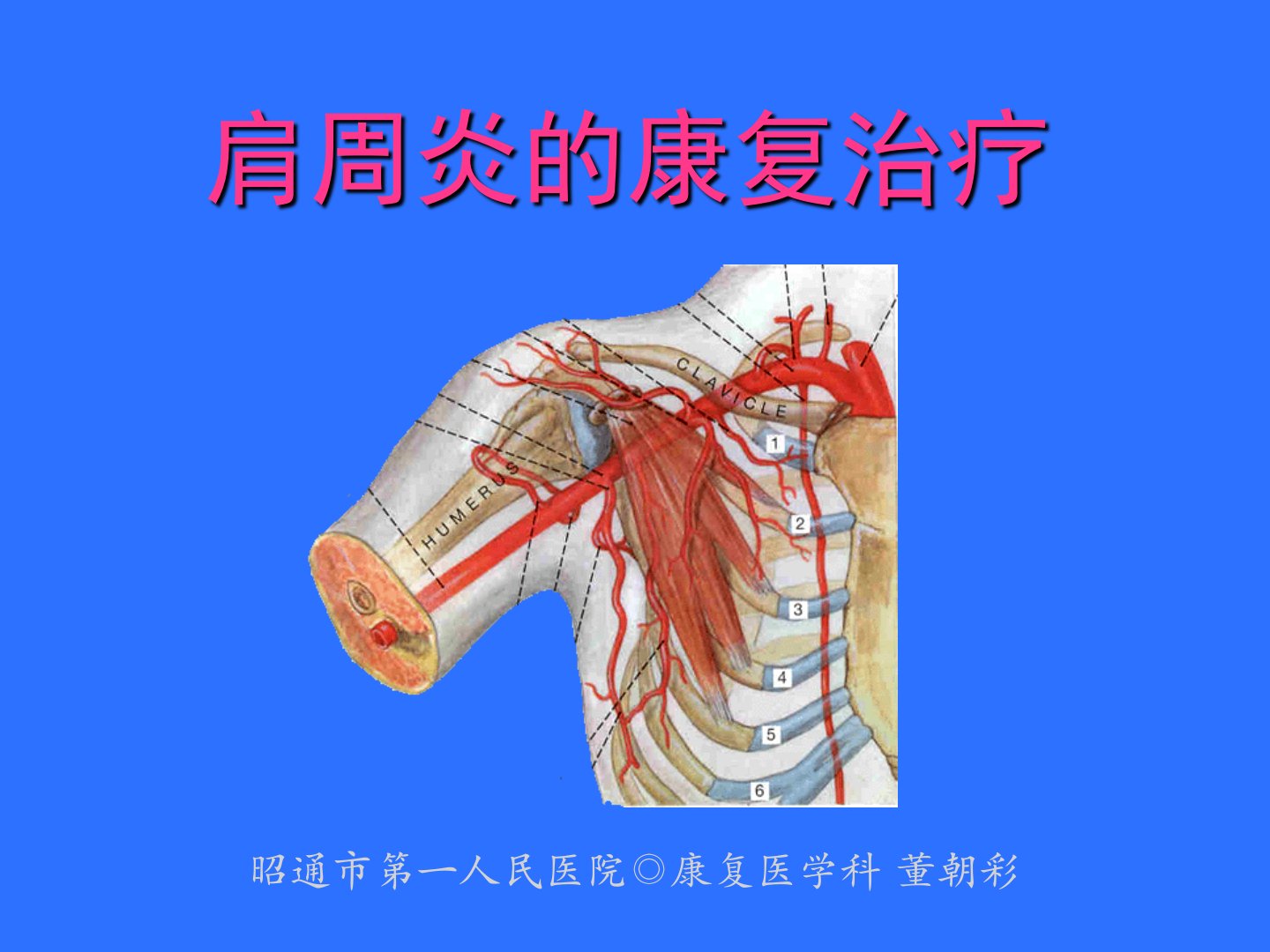 昭通市第一人民医院康复医学科董朝彩介绍了肩周炎的康复治疗。肩周炎即肩关节周围炎又称粘连性关节囊炎等是肩关节周围肌肉等的慢性损伤性炎症。其临床表现包括:疼痛严重影响睡眠与生活;肩关节活动障碍导致日常生活能力下降;部分患者还可能产生心理障碍。肩周炎分为疼痛期、僵硬期和解冻期。肩关节的评定方法包括疼痛评定、关节活动度测定、肌力测定及肩关节功能评定。康复治疗手段多样包括药物治疗、物理因子治疗(如低频脉冲电治疗、热疗等)、运动疗法(如肩部推拿按摩、关节松动技术、自主被动运动等)。运动时动作范围要逐渐增大每一动作均应缓慢且不应引起疼痛且宜一日多次进行。预防肩周炎需避免长期过度疲劳损伤后及时规范治疗并避免感冒等诱因50岁左右人群尤其要注意。此外还介绍了肩周炎活动受限的检查方法如摸口实验、摸背实验等。