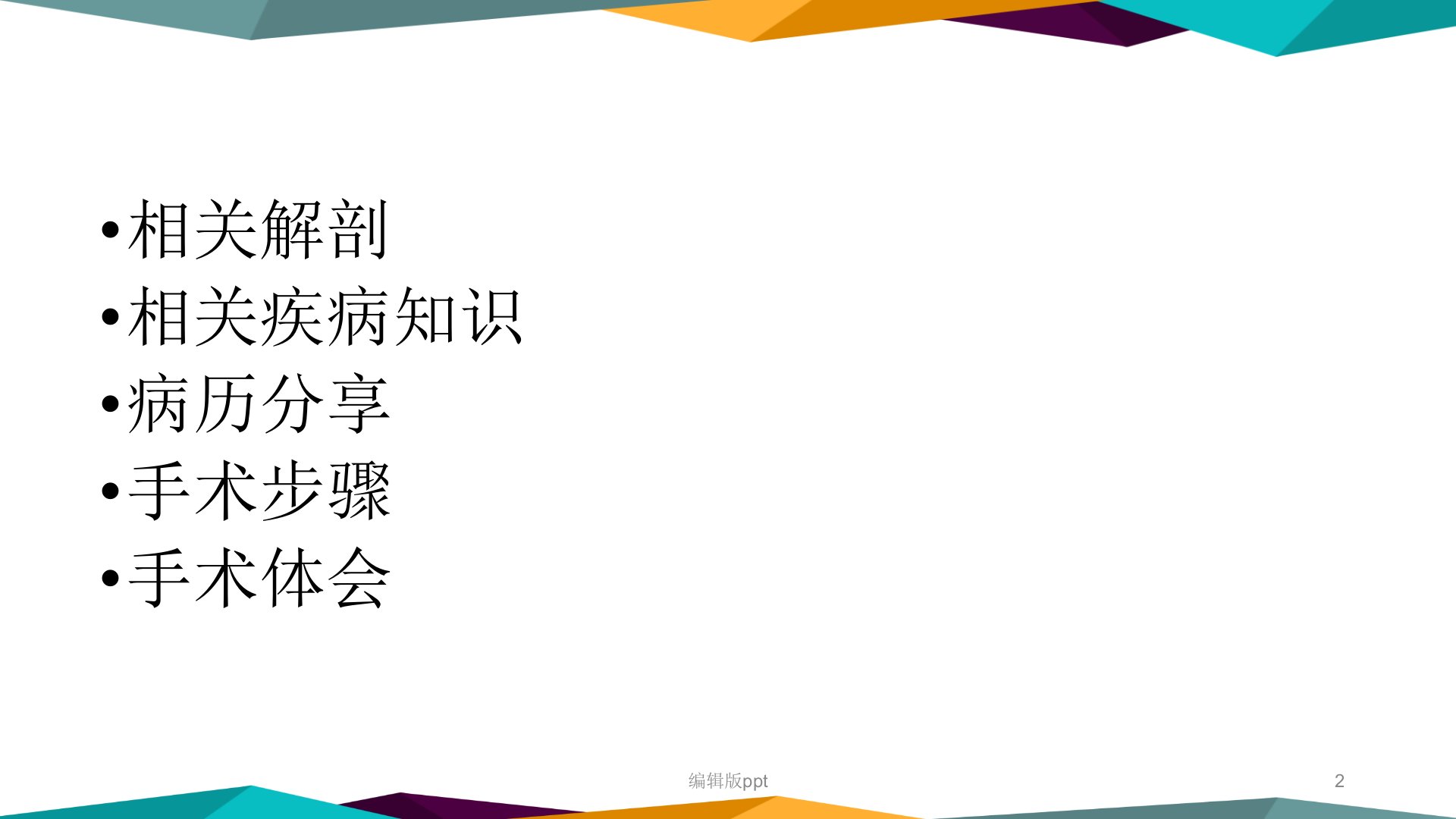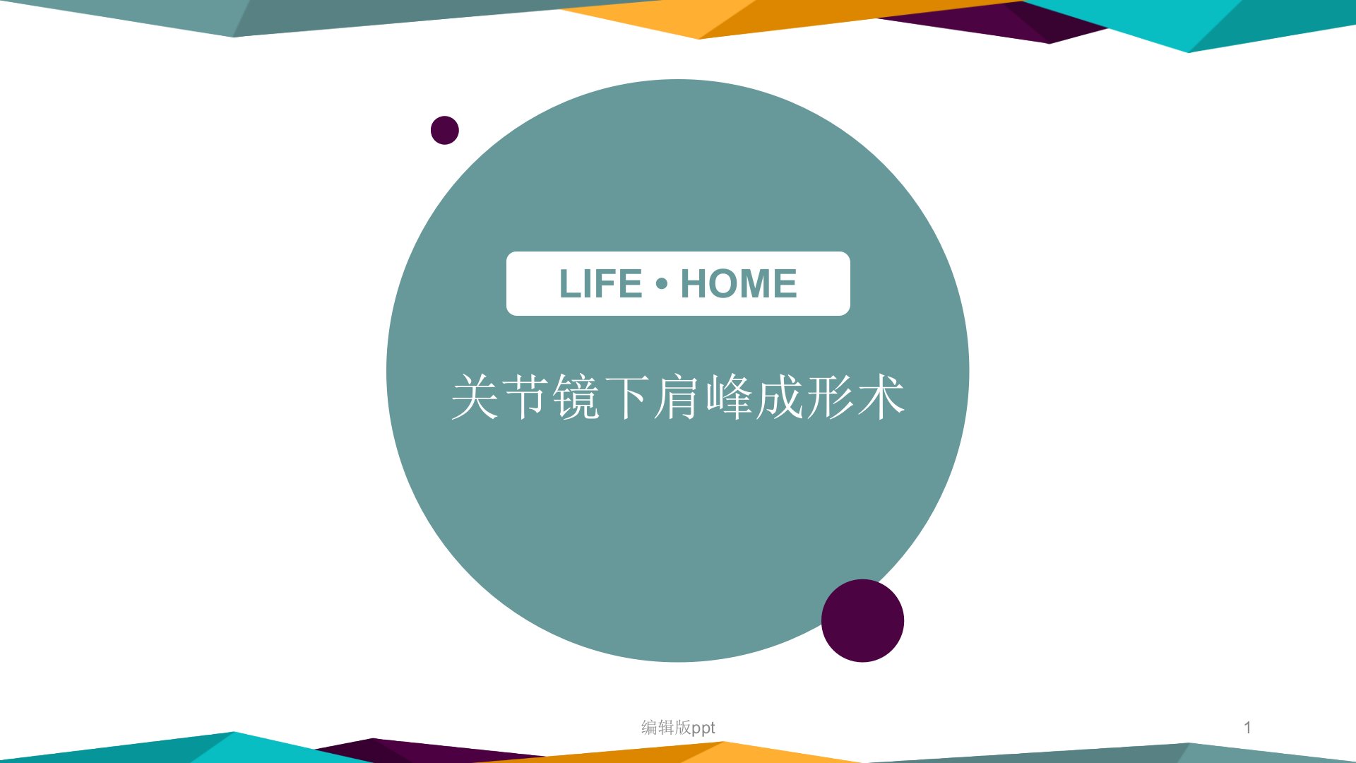 作为一名医生现对关节镜下肩峰成形术编辑版ppt相关内容进行摘要:肩峰是肩胛冈外侧端向前伸展的突起其下存在肩峰下间隙底部为肱骨头顶部为喙突、肩峰及喙肩韧带构成的喙肩穹又称第二肩关节。肩峰撞击综合征是肩峰下关节因解剖或动力学原因在肩上举、外展运动时发生撞击而产生的症状可分为三期。手术麻醉采用全麻体位为沙滩位或侧卧位需认真消毒。房间布局以左侧患侧为例进行规划物品准备包括无菌物品、一次性物品等。手术过程包括核对病人、建立静脉通道、固定患者、采取合适体位、体表标记、消毒铺巾、关节镜检、建立通道、清理病损组织、止血、清除软组织、显露肩峰、磨掉骨刺、打磨肩峰等步骤。手术体会包括确保患者体位安全舒适且便于操作、重视防水处理、密切观察灌注液使用情况、固定好腔镜器械、轻拿轻放清洗腔镜器械、做好心理和皮肤护理、观察生命体征等。