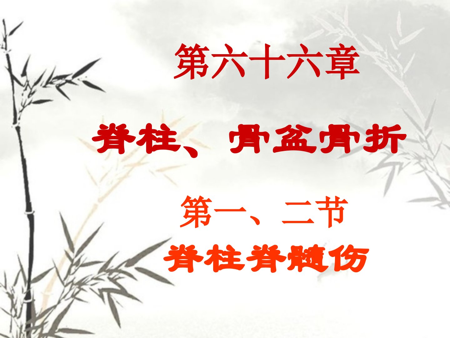 脊柱、骨盆骨折摘要脊柱脊髓伤基础解剖与病因介绍了脊柱的解剖、作用及“三柱理论”病因包括直接、间接暴力及肌肉牵拉力。胸腰椎骨折分类分为单纯性楔形压缩性骨折、稳定性不稳定性爆破型骨折等多种类型。临床表现颈椎骨折表现为颈部疼痛、不稳感等;胸腰椎骨折则有腰背部疼痛、成角畸形等合并脊髓损伤会有神经损害体征。诊疗思路先判断有无骨折、分类、神经损伤及伴随伤、是否为多发伤再通过详细询问病史、仔细查体、影像学诊断(X线、CT、MRI、椎管造影)来确诊。急救搬运与治疗急救搬运要正确治疗先挽救生命胸腰椎骨折根据有无神经症状采用手法复位或手术治疗;颈椎稳定型损伤采用牵引复位不稳定型损伤则手术治疗。脊髓损伤类型多样治疗包括非手术(制动、脱水等)和手术治疗。骨盆骨折基础解剖骨盆呈环状由骶骨及两侧髋骨组成分联结弓和承重弓功能是支持体重。分类按骨折位置与数量、暴力方向分类。临床表现患者多有严重多发伤低血压休克常见有骨盆分离挤压试验阳性等表现。诊断思路及步骤监测血压、建立补液途径尽快完成X线和CT检查观察尿液、做诊断性腹穿。治疗原则抢救生命为第一位积极补液、输血、抢救休克处理合并症根据骨折情况采用非手术或手术治疗。