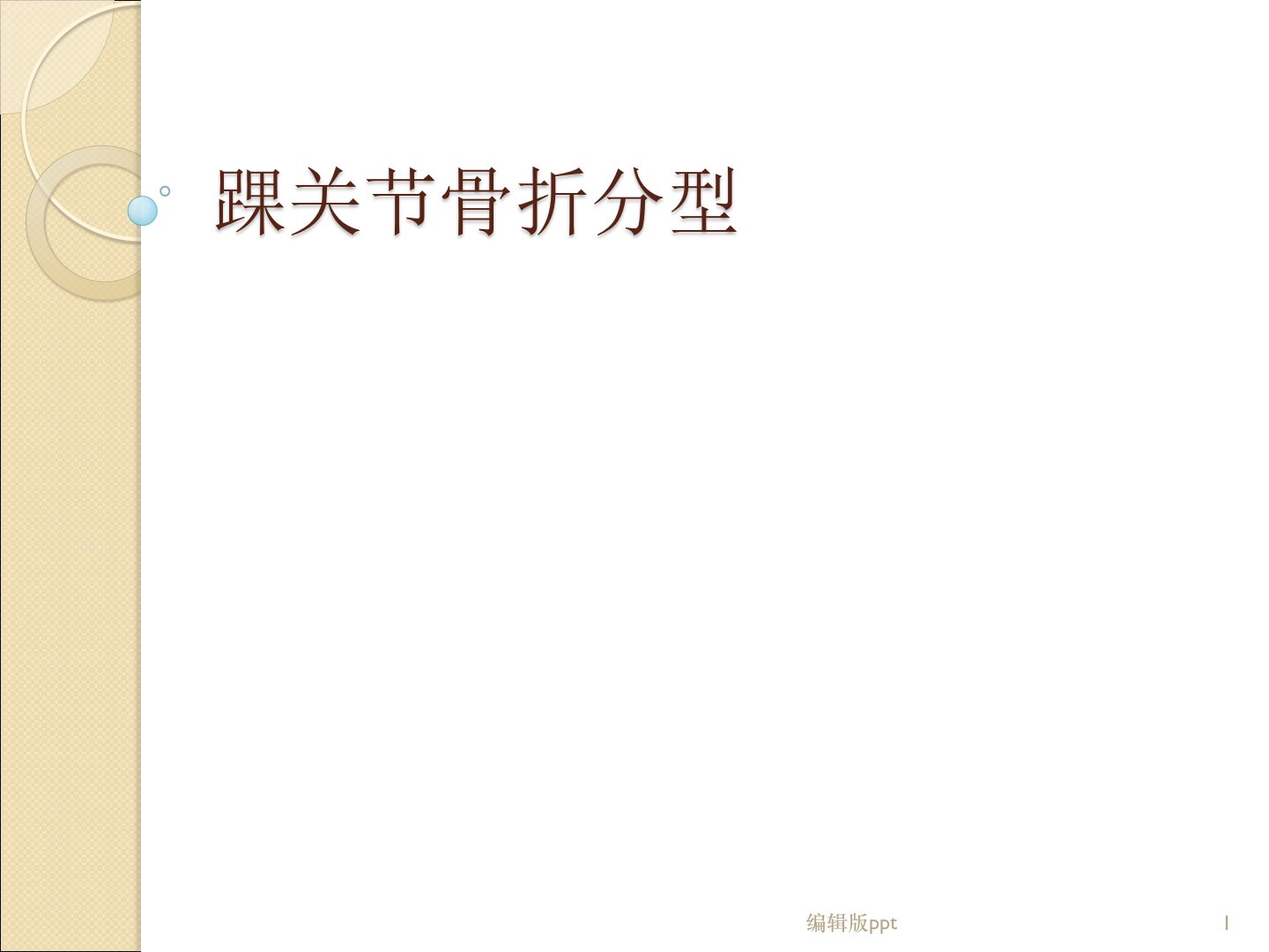 踝关节骨折分型PPT介绍了踝关节解剖结构包括外侧副韧带、内侧副韧带、深三角韧带及下胫腓联合韧带等并解释了踝关节旋前、旋后的定义。受伤机制主要包括内翻、外展、外旋。踝关节损伤分型中AO分类(DanisWeber分类)主要依据腓骨骨折高度、下胫腓联合及胫距关系分为三型适用于手术适应症选择。LaugeHansen分型则根据损伤时足的位置和变形力量分类包括旋后内收、旋后外旋、旋前外展、旋前外旋四种类型每种类型又根据损伤程度细分为不同度数详细描述了各度数下的损伤特征和骨折情况如旋后内收型主要因足部在旋后位时遭受内收暴力分为三度涉及外踝骨折、外侧副韧带断裂及内踝骨折等。PPT还对比了AO分型与LaugeHansen分型并详细列出了AO分型下的骨折分类。