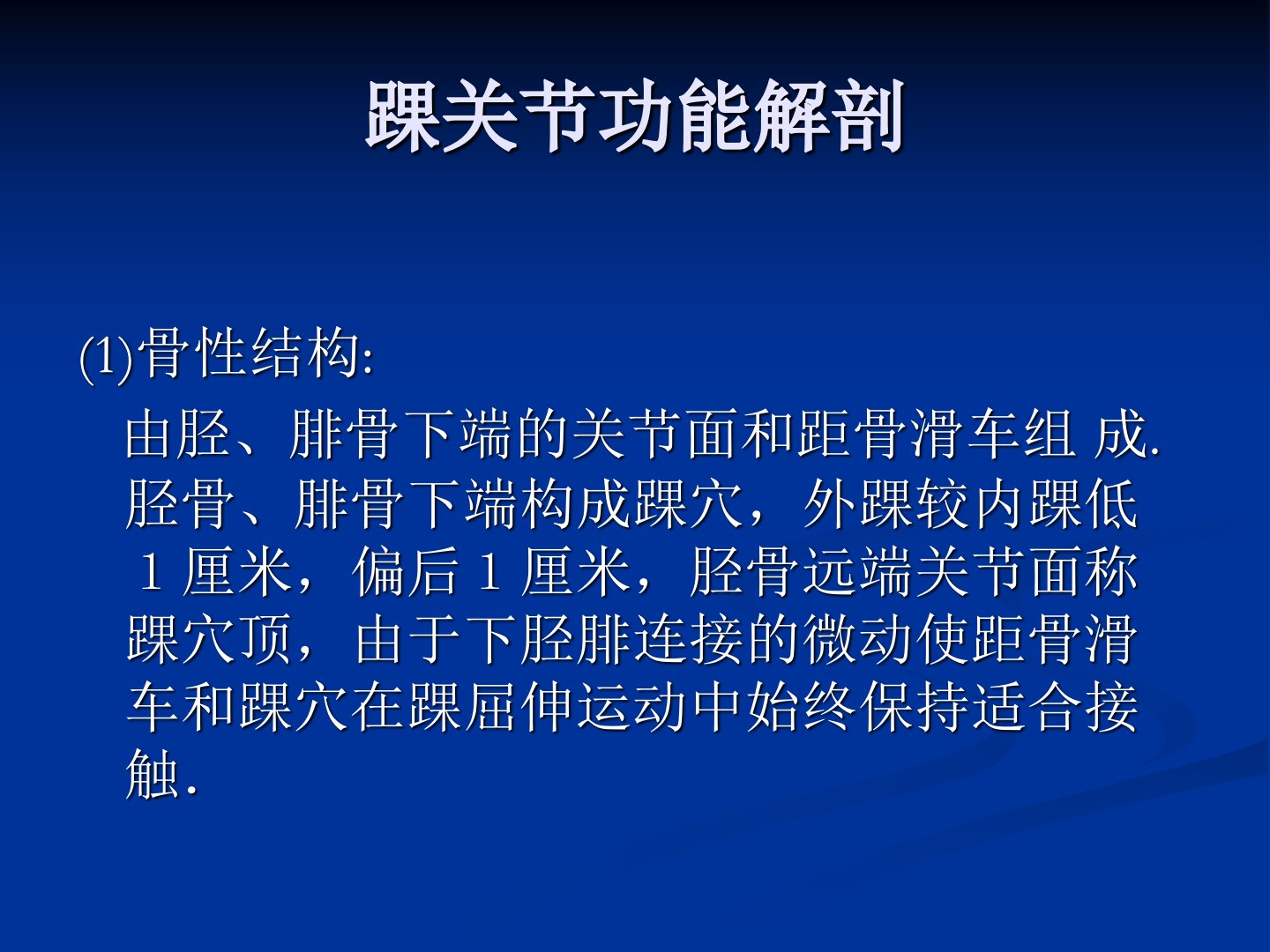 踝关节骨折涉及骨性与韧带结构其中韧带结构包括下胫腓复合体(含下胫腓前、后韧带及骨间韧带后方损伤多致胫骨后结节撕脱骨折前方多为下胫腓前韧带撕裂)和内侧副韧带(三角韧带含胫距前、胫跟、胫距后韧带)。踝关节为屈戌关节主要运动为背屈和跖屈距骨滑车前宽后窄特性使踝关节在跖屈时不够稳固故扭伤多发生在此时。踝关节曲伸与距下关节及足运动联合跖屈时足内翻内旋背屈时足外翻外旋。足位置变化导致距骨移动方向改变形成旋后、旋前等动作。LaugeHansen分型包括旋后内翻型、旋后外旋型(最常见)、旋前外展型、旋前外旋型、旋前背屈型其中旋后外旋型表现为外踝骨折下胫腓后韧带断裂或后踝骨折加三角韧带断裂或内踝骨折等;旋前外展型则表现为足外翻等。患者王某因外伤后右踝疼痛伴功能受限入院查体见右小腿及足部夹板外固定肿胀压痛踝关节活动差。