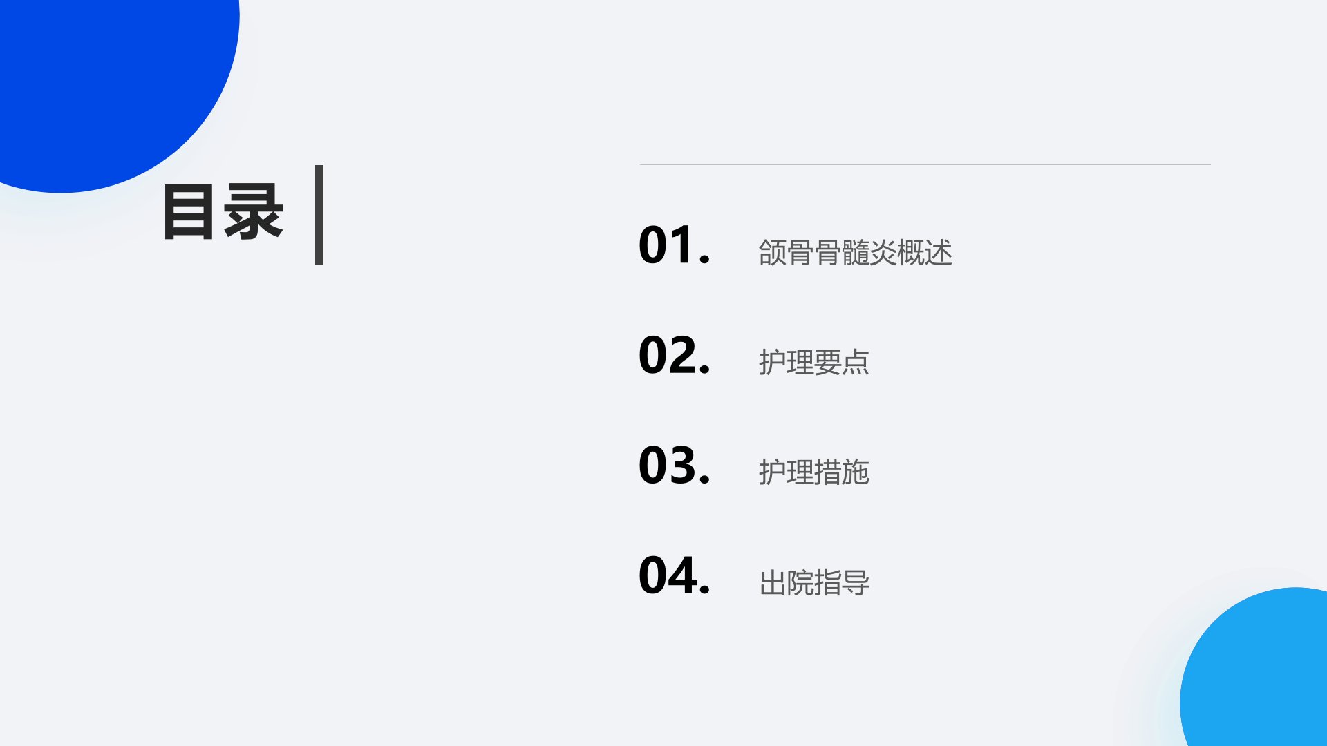 《刀客特万颌骨骨髓炎护理PPT课件》摘要颌骨骨髓炎是发生在颌骨骨髓腔内的炎症性疾病病因包括感染、创伤、肿瘤等感染最常见。症状主要有局部红肿、疼痛、发热、功能障碍等可通过X光片、CT扫描、实验室检查诊断治疗原则为抗菌、止痛、支持治疗方法有药物、手术、物理治疗及营养支持、心理护理。护理要点包括预防感染如保持口腔清洁、定期更换纱布、定期检查伤口;保持营养均衡增强免疫力;定期复查监测病情;保持良好生活习惯避免熬夜劳累;保持良好心态。疼痛管理需评估程度采用药物、物理、心理治疗。护理措施涵盖口腔护理避免刺激性食物;营养支持高蛋白等饮食并定期评估;心理护理建立良好护患关系提供心理支持。出院后患者要自我护理保持口腔清洁、避免剧烈运动、保持良好饮食习惯、定期复查、保持良好心态预防复发。