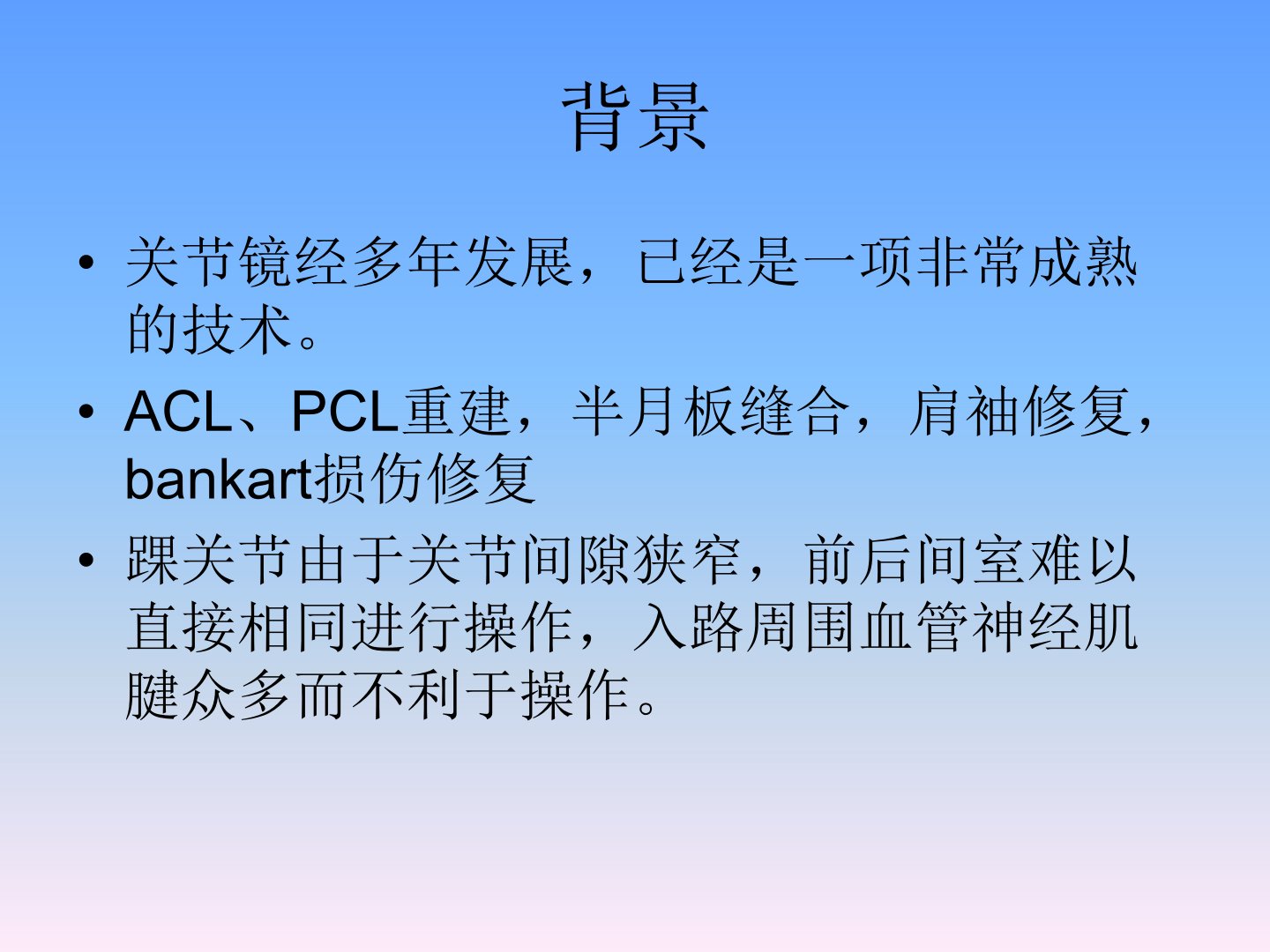 摘要:本文介绍了踝关节相关的入路位置、损伤表现、体查方法及手术建议。前外侧入路在胫距关节水平第3腓肠肌腱外侧前内侧入路在胫前肌腱内侧关节线上后外侧入路在关节线水平跟腱外侧。踝关节内翻扭伤可致前距腓韧带、前下胫腓韧带甚至跟腓韧带撕裂后期外侧沟增生、纤维束瘢痕化出现局限性踝关节前外侧疼痛持续行走、跑步或运动后加重且该部位间歇性肿胀。体格检查时拇指按压前外或前内侧同时将足由跖屈位推向背伸位若按压处疼痛出现或加重则为阳性因撞击组织被按压入关节隙诱发或加重疼痛。此外不建议采用踝关节镜下踝关节融合手术。