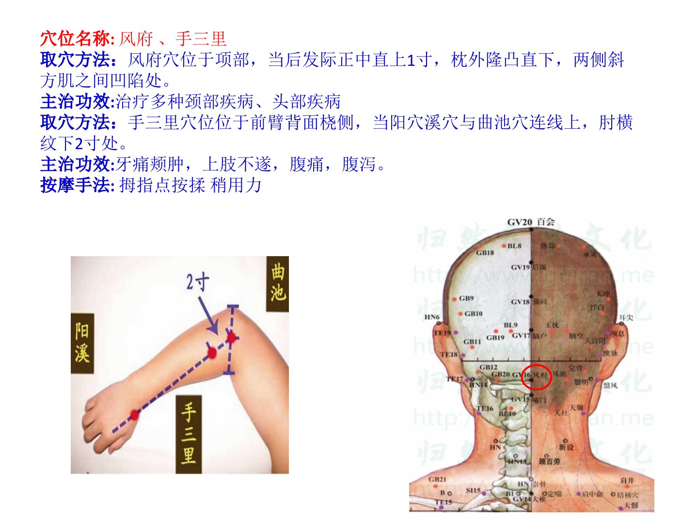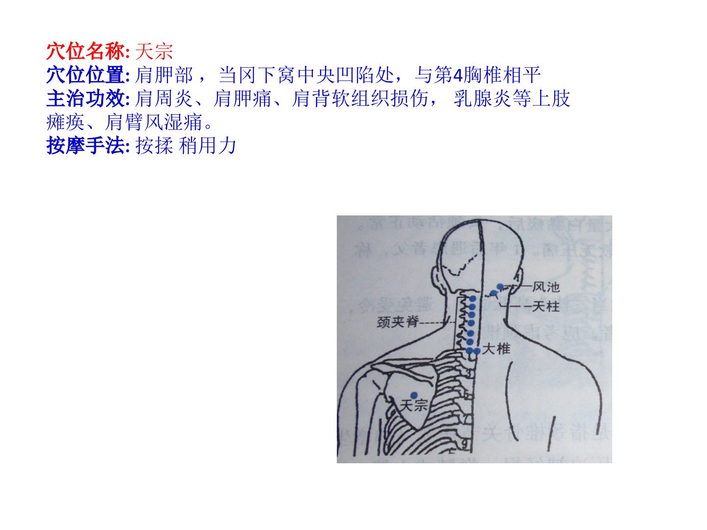 治疗颈椎病可按摩以下穴位:风府穴位于项部后发际正中直上1寸处可治颈部、头部疾病;手三里穴在前臂背面桡侧主治牙痛颊肿、上肢不遂等;天宗穴在肩胛部冈下窝中央凹陷处主治肩周炎、肩胛痛等;后溪穴位于手掌尺侧主治颈肩腰椎病等;肩髃穴在臂外侧三角肌上主治肩臂挛痛不遂等;天牖穴在颈侧部乳突后方主治颈椎病、肩背疼痛等;丘虚穴在足外踝前下方主治颈项痛等;悬钟穴在外踝上面四指宽位置主治落枕、颈椎病等;肩井穴在肩上前直乳中主治肩酸痛、落枕等;大包穴距腑下约14厘米处主治急性腰扭伤、颈椎扭伤等;阴谷穴在大腿内侧膝盖关节内侧上方主治疝痛月经不调等;天柱穴在颈部后头骨正下方凹处主治颈椎酸痛、落枕等。按摩时需稍用力具体手法依穴位而异。