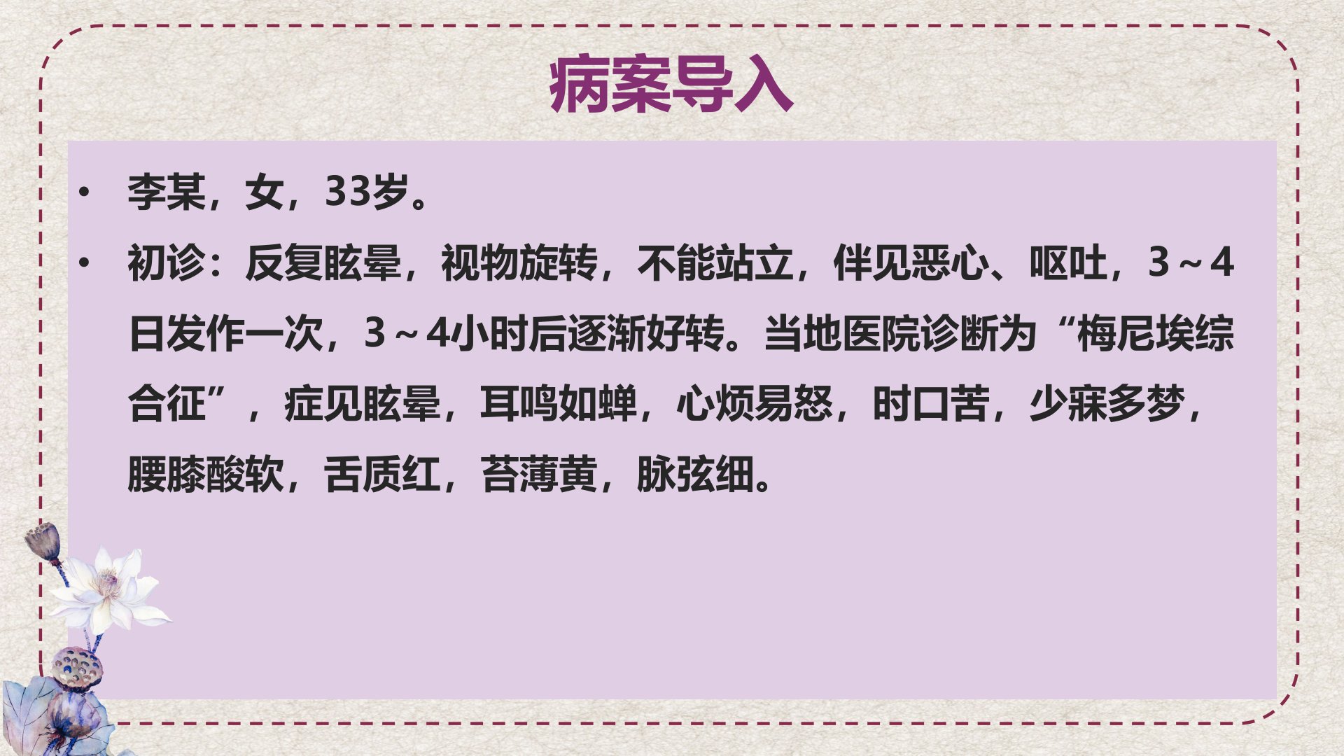 摘要本文以33岁女性李某的眩晕病案导入其被诊断为“梅尼埃综合征”症见眩晕、耳鸣如蝉、心烦易怒等辨证为肝肾阴虚阳亢风动。眩晕以头晕目眩为主症轻者闭目即止重者旋转不定不能站立西医学中的良性位置性眩晕、脑缺血等可归属本病范畴。病因病机眩晕发生与情志不遂、年老体弱等多种因素有关基本病机包括虚实两端本虚为肝肾亏虚等标实为风、火、痰、瘀扰乱清窍病理性质为本虚标实。诊断与鉴别诊断以头晕目眩等为主症多有相关病史需与厥证、中风鉴别。辨证论治1辨证要点:辨相关脏腑、虚实标本、缓急轻重。2治则治法:补虚泻实调整阴阳。3证治分类:包括肝阳上亢、痰湿中阻、瘀血阻窍、气血亏虚、肾精不足等证型及治法方药。临证备要眩晕与肝关系密切要警惕“眩晕乃中风之渐”。预防调护保持心情舒畅注意劳逸结合饮食清淡有节等。该病病因多样病位在脑涉及多脏治疗分标本缓急预后易反复少数有发为中风之忧。文中还列举了古籍摘要与文献推介。