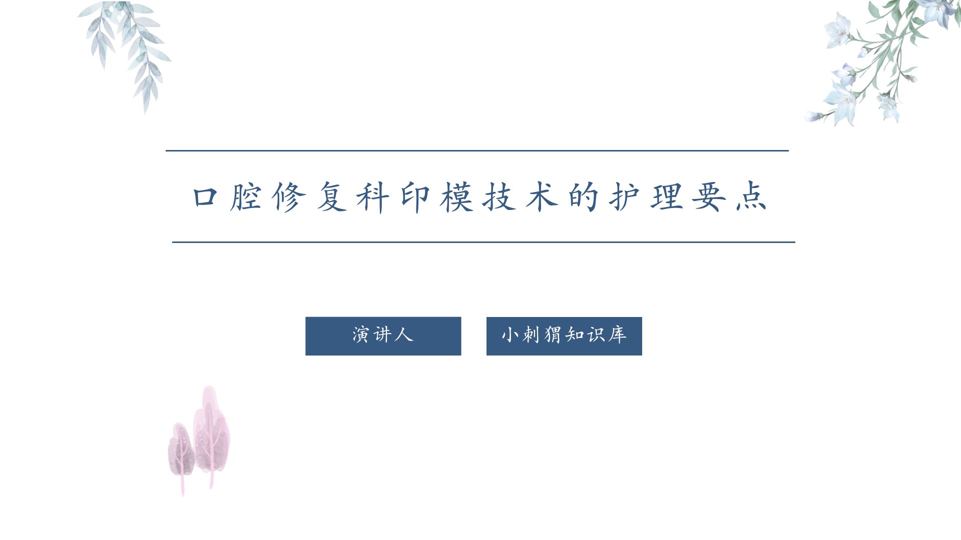 口腔修复科印模技术的护理要点摘要演讲人小刺猬知识库围绕口腔修复科印模技术的护理展开介绍涵盖用物准备与护理过程。用物准备方面需备齐一次性检查盘、口杯、手套、托盘等各类物品。要根据病人牙弓大小、形状等选合适托盘确保托盘与牙弓内外侧有34mm间隙翼缘不影响唇、颊、舌活动上、下颌托盘后缘有特定位置要求;口腔条件差可选个别托盘。护理过程中先核对病人信息安排就座系胸巾、接漱口水、调椅位光源。取模时根据取上、下颌印模调好椅位让病人体位舒适提醒放松出现不适指导缓解。取模前调拌适量印模材装入托盘备好其他材料配合医生取完整印模冲洗消毒模型后送模型室。最后为病人填收费单、预约擦拭干净病人口周撤下物品消毒处理擦拭器械台及治疗椅。