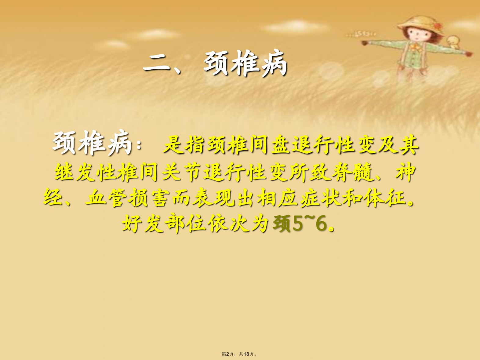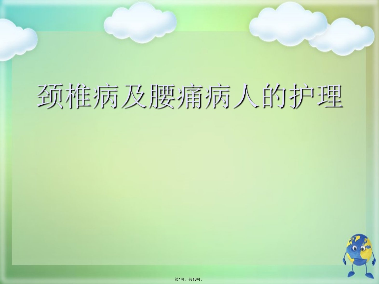 颈椎病及腰痛病人的护理(共18张PPT)【18页】