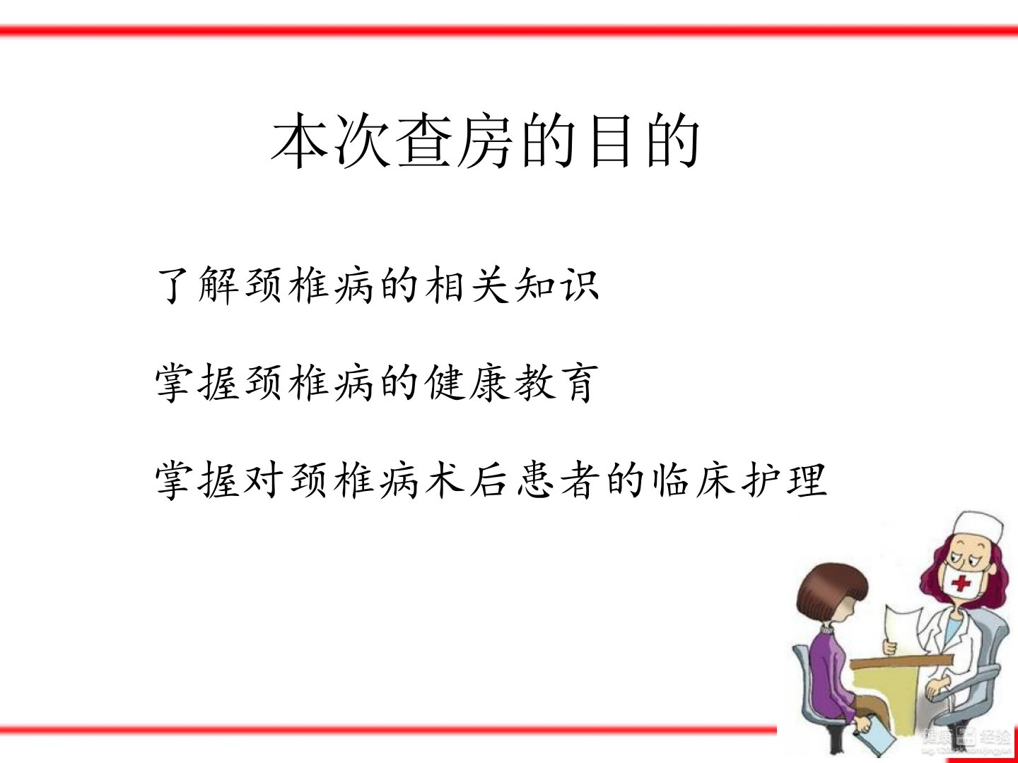 2018年5月10日指导老师开展颈椎病护理查房旨在让医护人员了解颈椎病相关知识、健康教育及术后护理。内容如下:1疾病知识:颈椎病指颈椎间盘退变及其继发性改变刺激或压迫相邻组织并引起症状和体征病因包括颈椎间盘退行性变、损伤、先天性颈椎管狭窄等可分为神经根型、脊椎型、椎动脉型、交感神经型临床表现复杂与病变部位、组织受累程度及个体差异有关。2病例介绍:患者曹志卓42岁离异因摔伤致四肢麻木无力20余天入院诊断为颈椎病合并四肢不全瘫无既往重大疾病史有胃部疼痛不适史。3护理计划:评估:患者有压疮低危因素、导管脱落风险、坠床跌倒高危风险。诊断:疼痛、知识缺乏、有跌倒坠床的风险、有尿路感染的危险、管路滑脱的风险、排便异常便秘、活动无耐力、有皮肤完整性受损的危险等。指导:包括纠正不良姿势、保持良好睡眠体位、选择合适枕头、避免外伤、加强功能锻炼及心理指导。4手术护理:术前训练:呼吸功能训练、气管食管推移训练、俯卧位训练。术后护理:密切监测生命体征保持呼吸道通畅;加强颈部制动维持颈部相对稳定;观察并发症如术后出血、脊髓神经损伤、植骨块脱落移位等。