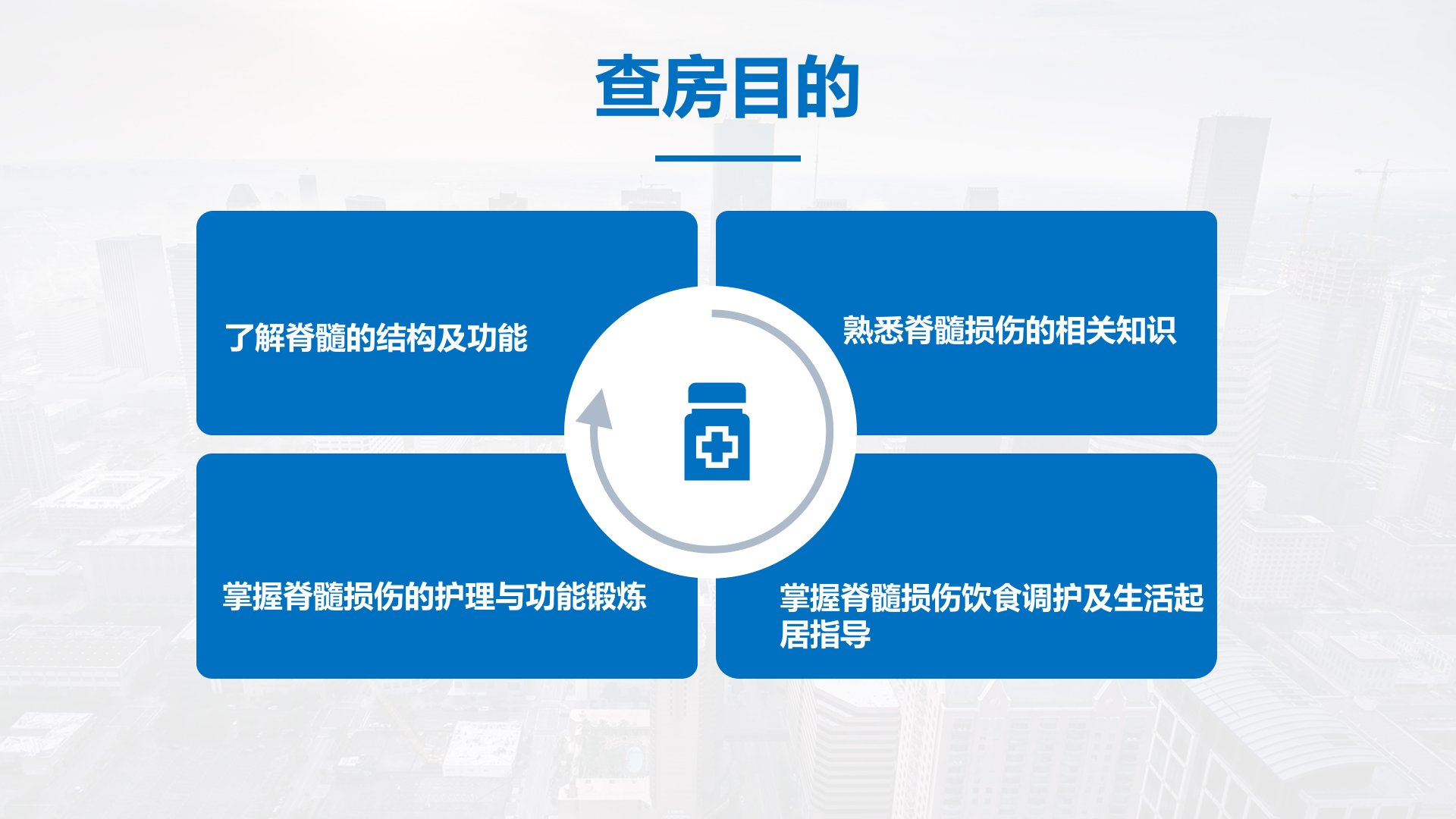 20XXNursingCoreSystemMEDICINE颈脊髓损伤恢复期护理查房摘要本次护理查房聚焦于颈脊髓损伤恢复期护理查房病例为59岁女性患者朱光琴因外伤后颈部疼痛伴四肢活动受限4小时余入院。患者不慎摔倒后颈部疼痛、活动受限伴四肢麻木经检查其C2T2水平脊髓损伤。护理方面采取绝对卧床、颈部支具制动、一级护理、心电监护等措施同时用甲基强的松龙等药物消止痛肿、活血化瘀及保护胃黏膜。诊疗计划包括中药内服活血祛瘀以及通过现代控制理论解决排水系统运行自动控制问题等跨领域知识借鉴。脊髓损伤是严重致残性损伤康复应早期介入中后期以康复治疗为主目标是预防并发症、减轻残疾、提高生活质量。护理需关注焦虑、皮肤完整性受损、便秘等问题采取耐心沟通、定时翻身、饮食护理等措施。康复治疗强调早期介入中后期以康复治疗为主通过肢体功能锻炼、中医康复技术等提高功能锻炼效果。
