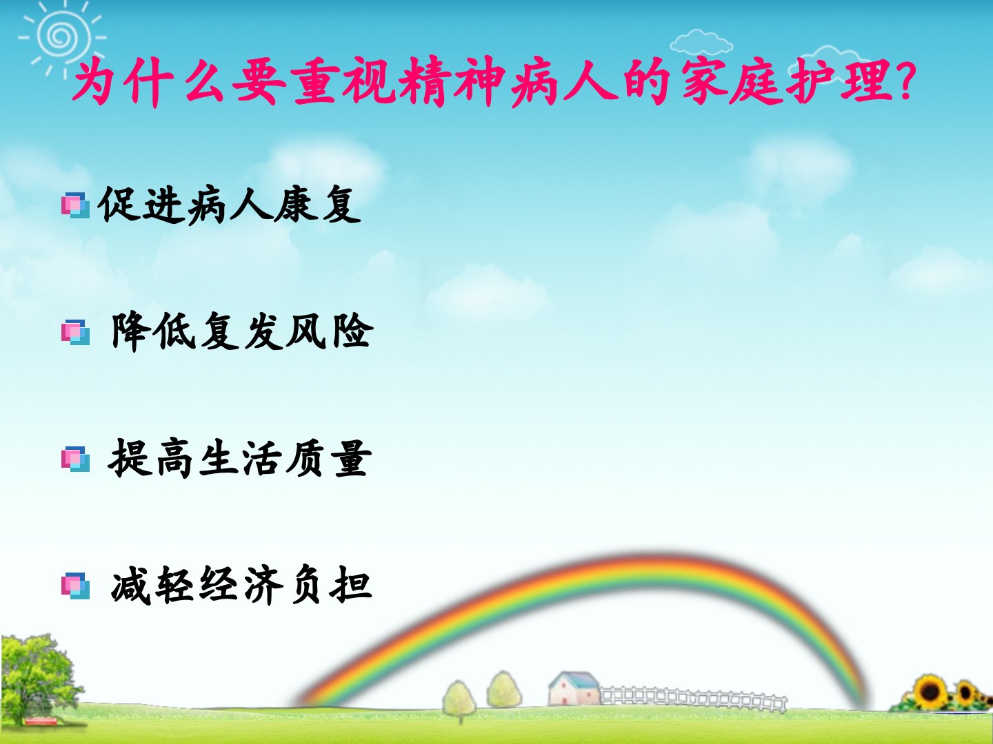 《精神疾病的家庭护理》摘要主讲人李娟利围绕精神疾病家庭护理展开讲解。强调重视家庭护理可促进病人康复、降低复发风险、提高生活质量、减轻经济负担。家庭护理中精神病人分门诊诊治和住院治疗后出院两类。门诊病人需定期复诊、遵医嘱治疗、观察药物反应;出院病人要遵医嘱服药、定期复诊、生活规律、适当活动。出现复发先兆如症状再现、不遵医嘱服药等应尽快复诊。家庭护理措施包括观察沟通、心理辅导、服药监督、生活照顾、判断危险行为。要妥善保管药物督促病人服药发现不良反应立即就诊。日常生活要制订作息表让病人做力所能及之事。同时讲座还介绍了家属常见误区及注意事项以及精神病人危险行为如自杀、自伤、暴力行为的概念、原因和应对原则并指出何时需要住院治疗。最后强调要助力精神病人社会功能康复进行多项技能训练利用社区资源为病人康复努力。