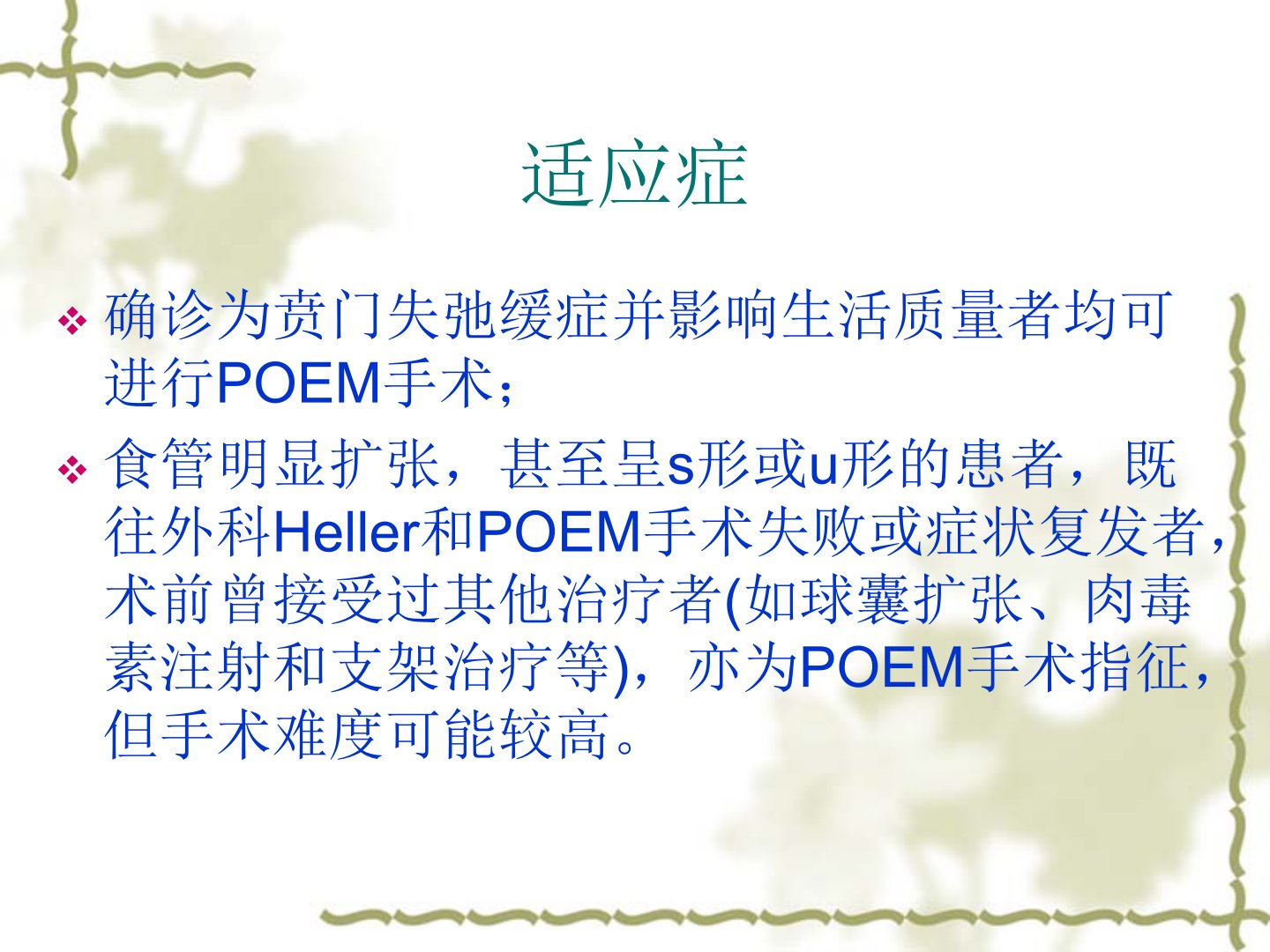 经口内镜下食管肌层切开术(POEM)是贲门失弛缓症的新型治疗手段能在胃镜直视下进行环形肌纵行切开即时解除LES梗阻提高术后疗效。该手术适应症包括确诊为贲门失弛缓症并影响生活质量者、食管明显扩张者、既往外科Heller和POEM手术失败或症状复发者等。但合并严重凝血功能障碍、严重心肺等器质性疾病、食管黏膜下层严重纤维化、食管下段或EGJ明显炎症或巨大溃疡者无法耐受手术是手术禁忌。手术需精确评估、充分告知、禁食限水、预防感染在全麻插管下进行涉及粘膜切开、隧道建立、肌层切开、隧道关闭等步骤。手术风险包括出血、纵膈感染、气胸等需制定相应预警方案如彻底止血、抗生素治疗、胸腔闭式引流等。术后需禁食水、半卧位、抑胃酸、抗感染定期进行CT、内镜、测压加钡餐检查并电话随访。
