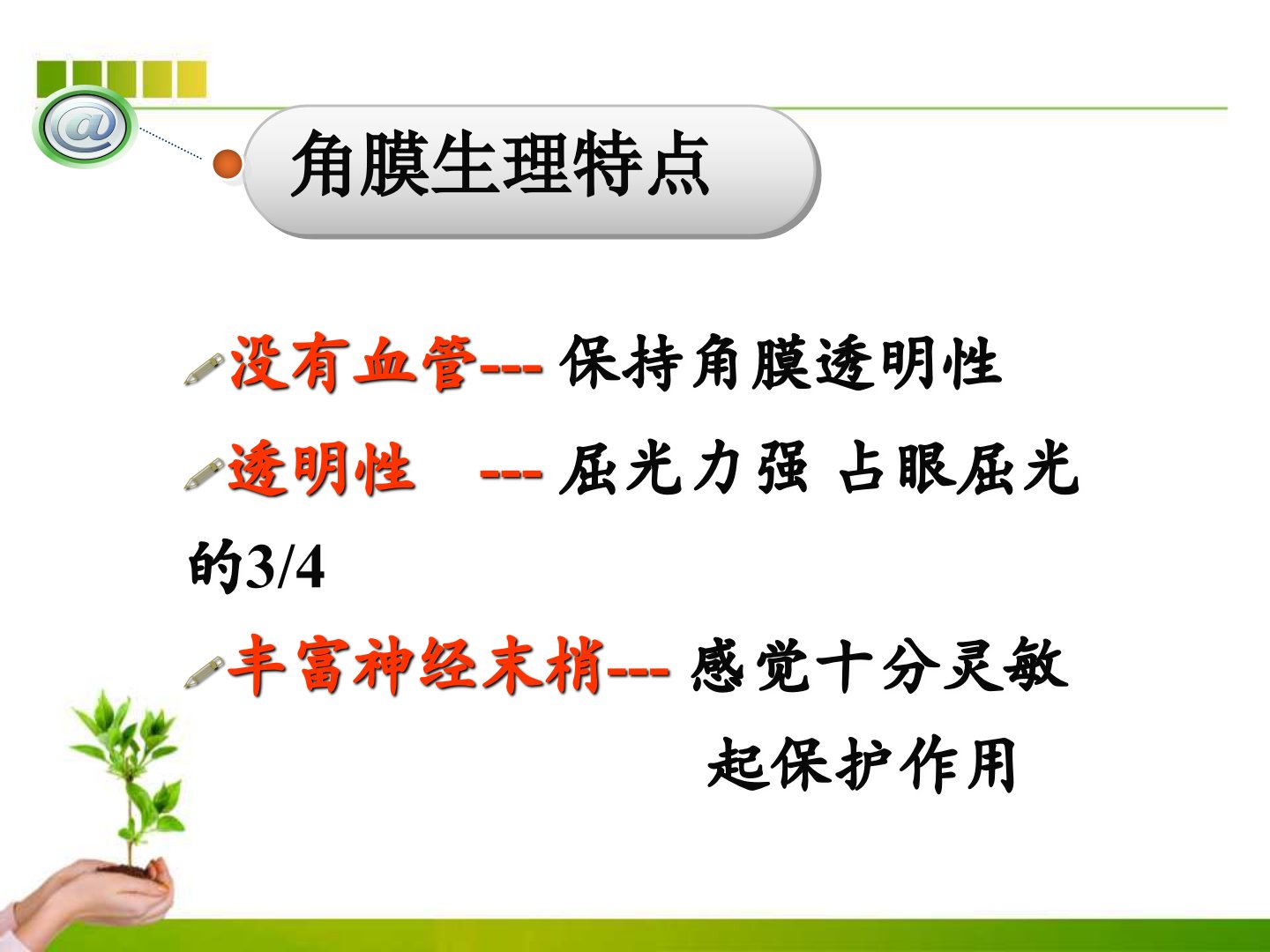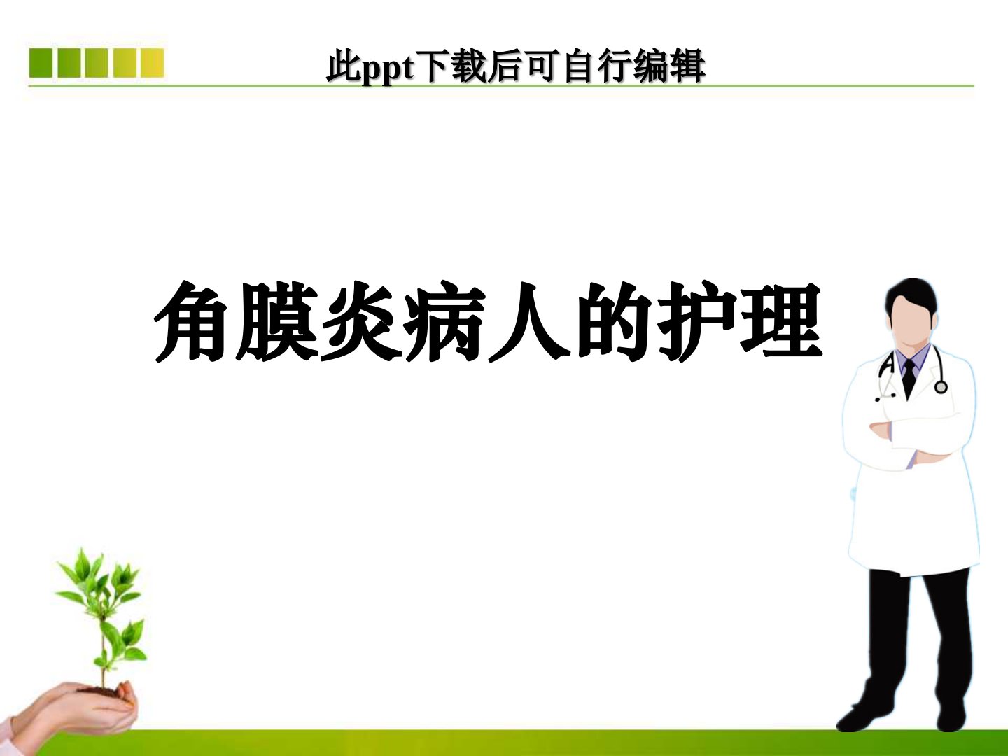 角膜炎病人的护理摘要角膜炎病人护理需关注角膜生理特点:无血管、透明、屈光力强、神经末梢丰富。角膜炎类型包括细菌性、单纯疱疹病毒性及真菌性。一、病因1外源性:外伤感染。2内源性:全身疾病、营养不良。3局部蔓延:结膜、角膜、巩膜、虹膜睫状体病变。二、病理过程外源性角膜炎历经角膜浸润、溃疡形成、消退及愈合可能伴发角膜瘢痕、穿孔等严重并发症。三、临床表现症状包括眼痛、畏光、流泪、视力下降。体征有眼球充血、角膜浸润混浊、溃疡、新生血管及虹睫炎。四、诊断与治疗诊断依据病史、临床表现及实验室检查。治疗原则为去除病因、控制感染、增强抵抗力、促进愈合、减少瘢痕。细菌性角膜炎需用抗生素病毒性则用抗病毒药物真菌性则用抗真菌药物。五、护理措施保持眼部清洁避免使用皮质类药物减少刺激加强营养培养良好卫生习惯。六、健康教育强调眼部卫生与休息避免交叉感染定期复查。