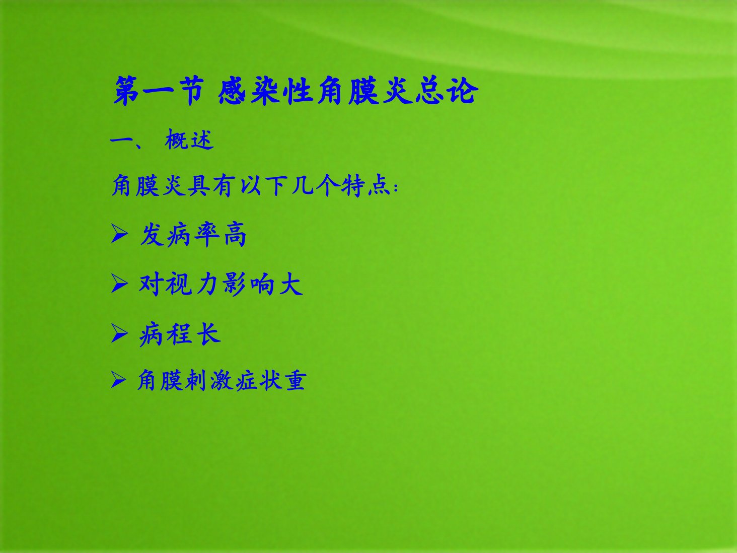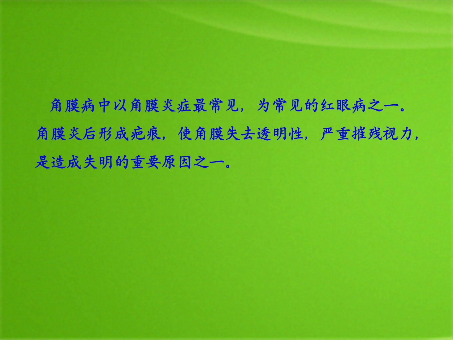 角膜炎作为常见角膜病是致盲重要原因。角膜炎特点包括发病率高、影响视力、病程长、刺激症状重这与角膜解剖组织特点有关。角膜位于眼球前表面易受外伤和感染是屈光介质重要部分本身无血管有丰富三叉神经末梢。病因方面感染最常见外伤易引发细菌等感染全身性疾病如单疱病毒等也可引起三叉神经麻痹可致神经麻痹性角膜炎。护理评估包括症状如刺激症状、视力下降体征如角膜周围充血、浸润混浊、溃疡、新生血管等角膜炎转归多样可能消散吸收不留疤可能留下白斑、斑翳、云翳等疤痕也可能穿孔致严重后果。辅助检查有角膜刮片、组织活检等。治疗原则为去除病因、促进炎症吸收、减少疤痕形成炎症阶段要针对病因治疗、局部用药后遗症治疗包括药物和手术。相关护理措施涵盖疼痛护理、用药护理、预防交叉感染、预防角膜穿孔及健康教育等。