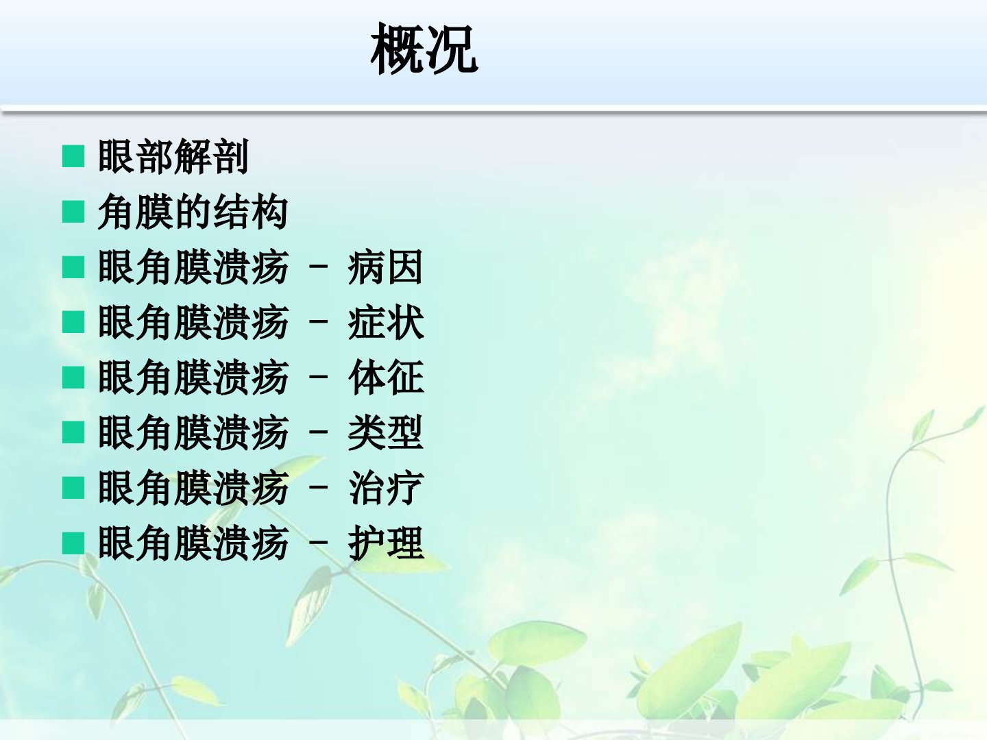 角膜溃疡的治疗和护理概况眼角膜是眼睛前部的透明结构无血管依赖泪液和空气获取营养由五层结构组成。眼角膜暴露在外与病菌接触机会多常因外伤、感染、全身性疾病等引发角膜溃疡严重时可致盲。角膜溃疡初期有怕光、流泪、眼痛等症状严重时视力减退甚至角膜穿孔。其类型包括匐行性、绿脓杆菌性、真菌性角膜溃疡症状各有差异。治疗上常用方法有消除诱因、控制感染、散瞳等顽固性溃疡可采用角膜烧灼法、冷冻法等角膜移植手术也是重要治疗手段分穿透性和板层角膜移植适应症有所不同。术后处理和自我保健对手术成功至关重要患者需继续用药按时复诊。角膜移植材料分活体和尸体捐赠对供体有严格要求。预防护理方面要注意眼部卫生及时治疗眼部疾病取出角膜异物后要预防感染点眼药水时防止细菌污染。