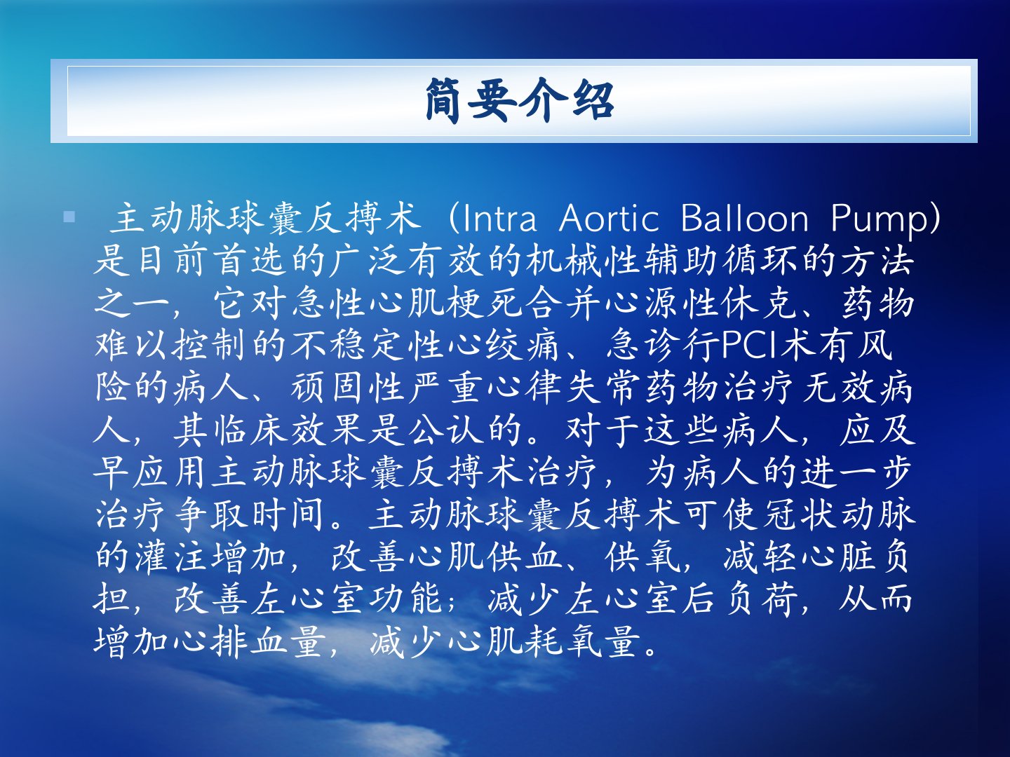 简要介绍ppt-主动脉球囊反搏术(IABP)的应用和护理【16页】
