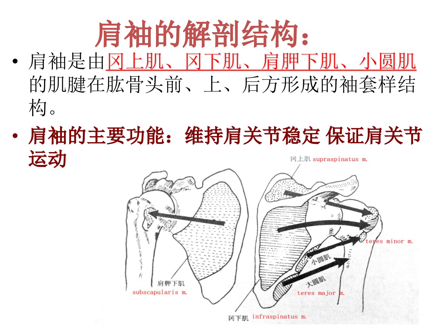 肩袖由四块肌肉肌腱构成可维持肩关节稳定保证肩关节运动。肩袖损伤多由间接暴力引起每年六百万人次因肩关节疾病就诊。其临床表现包括外伤史、疼痛加重、功能障碍、肌肉萎缩等可通过症状体征、临床试验、放射学检查诊断。治疗方法因损伤程度而异肩袖挫伤需三角巾悬吊、局部理疗;肩袖断裂急性期可卧位患肢牵引、局部理疗也可用三角巾悬吊法。大型肩袖撕裂或非手术治疗无效的可采取手术治疗包括小切口手术和关节镜手术。以患者闫四华为例其因右肩疼痛伴活动不便入院MRI示右肩袖损伤择期在臂丛麻醉下行右肩关节镜探查术。护理包括疼痛管理、心理支持、活动指导及预防感染等。术后需监测生命体征、饮食护理、冰敷、抬高患肢、观察肢端血运并指导功能锻炼。功能锻炼分阶段进行术后112周目标为恢复完全活动度术后56月可进行投掷等力量训练。出院时患者需注意避免运动伤害坚持正确锻炼注意肩部保暖。