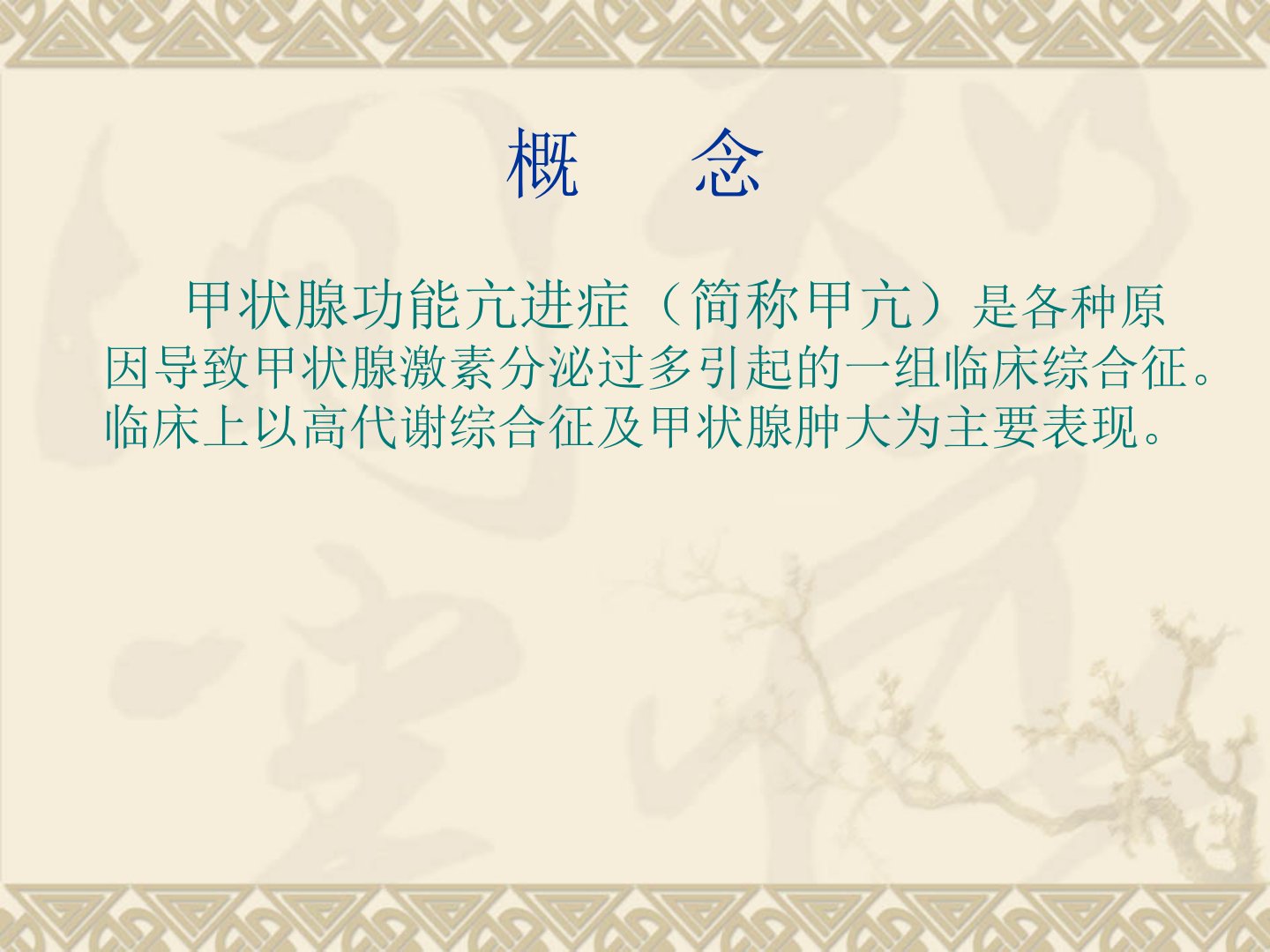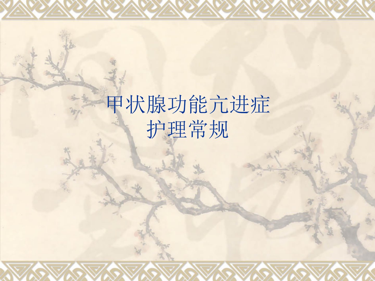 甲状腺功能亢进症护理常规摘要甲状腺功能亢进症(甲亢)是因甲状腺激素分泌过多引发的临床综合征主要表现为高代谢综合征及甲状腺肿大。甲亢分为原发性、继发性和高功能腺瘤三类其中Graves病最常见病因与遗传、自身免疫及应激因素有关。临床表现包括甲状腺对称性肿大、精神症状、突眼征、心血管系统功能改变、基础代谢率增高及内分泌紊乱等。辅助检查涵盖基础代谢率、甲状腺摄碘率、血清总T3、T4、游离T4、促甲状腺激素及甲状腺自身抗体测定。治疗要点包括一般治疗、抗甲状腺药物、手术及放射性碘治疗。术前需促进睡眠、补充营养进行药物准备术后需严密观察病情注意饮食及药物护理并观察并发症。甲状腺危象需紧急处理诱因包括应急状态、严重躯体疾病等治疗包括口服或静滴碘剂、吸氧、降温等。健康指导强调控制情绪、继续服药的重要性。
