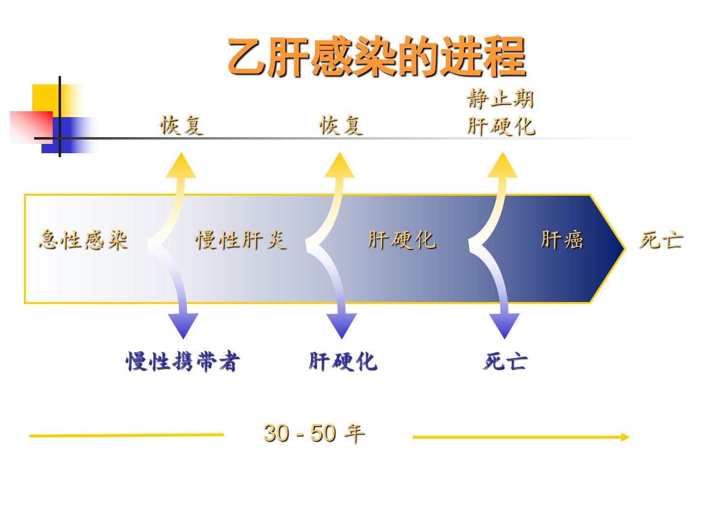 乙肝是全球性健康问题35亿人为慢性携带者每年超百万人死于HBV感染。乙肝感染进程显示HBV携带状态、CHB状态可进展转化为HCC、肝硬化cccDNA的稳定是病毒持续感染、病情慢性化和病毒难以清除的原因。我国HBV基因型主要为B和C型慢性HBV感染难治与整合性感染、免疫低应答、复制环节多等因素有关。HCC患者发病多与HBV感染相关抗病毒治疗应综合患者ALT、HBVDNA等因素决定治疗方案。多项研究证实HBV相关性HCC患者应用NAs、IFN可降低复发率、病死率提高生存率。HBV相关性HCC复发的主要病毒学因素为高病毒载量和HBeAg阳性。HBVDNA阴性肝癌患者应防范HBV再激活确诊后检测HBVDNA阴性接受TACE、放射治疗或全身化疗者建议治疗前及时开始加用NAs治疗。HBV相关HCC患者应积极抗HBV治疗优先选择强效低耐药的ETV或TDFIFN治疗亦有一定效果。