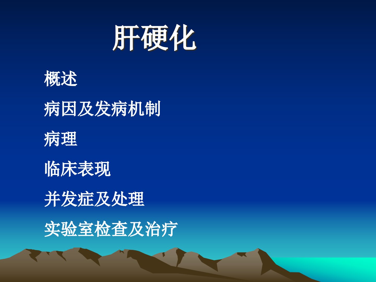 肝硬化课程摘要本课程旨在全面阐述肝硬化的相关知识。肝硬化是多种原因导致肝细胞弥漫变性、坏死纤维组织增生肝小叶结构和血液循环途径改建使肝脏变形、变硬。病因多样病毒性肝炎占68主要由乙肝、丙肝和丁肝混合感染所致;酒精中毒、胆汁淤积、循环障碍、工业毒物或药物、代谢障碍、营养障碍、免疫紊乱、血吸虫病及原因不明等也可引发。临床表现分代偿期和失代偿期代偿期症状较轻失代偿期有全身症状、肝功能减退、内分泌紊乱等表现门脉高压症有脾肿大、腹水、侧支循环建立和开放三大表现。并发症包括上消化道出血、肝性脑病等。实验室检查有BIL、ALT、AST等指标其他检查包括钡餐、B超、CT、MRI等。治疗涵盖一般治疗、药物治疗、腹水治疗、难治性腹水治疗、门脉高压症手术治疗及并发症治疗。课程还通过病例分析介绍了肝性脑病、食道胃底静脉曲张破裂出血的处理原则。