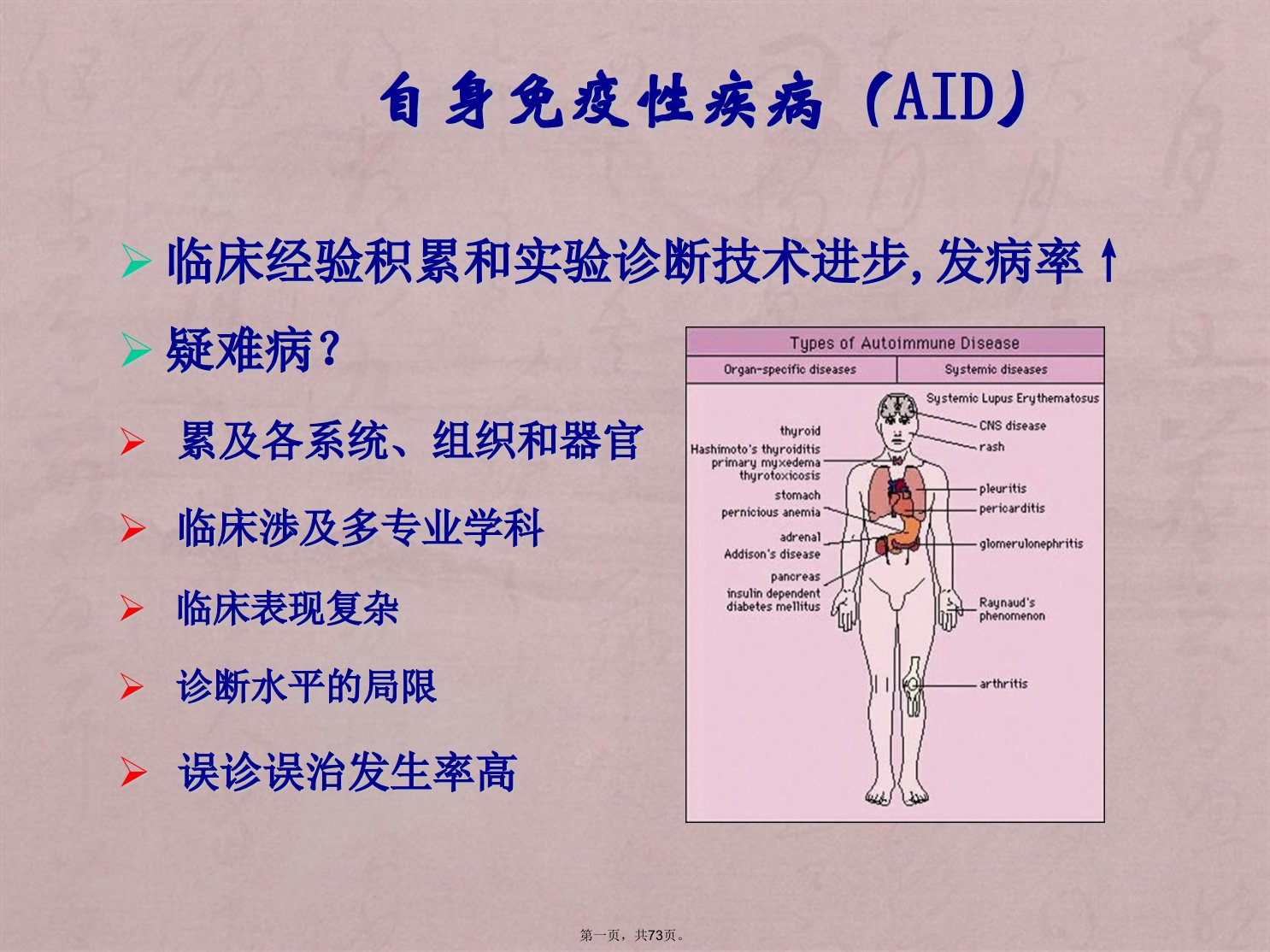 自身免疫性疾病(AID)发病率上升临床表现复杂涉及多系统、组织器官易导致误诊误治。AID诊断依赖于特征性临床表现、实验室检查、疾病分类及诊断标准。实验室检查包括临床检验、免疫学检查、特殊实验室检查、影像学及组织病理学检查其中自身抗体检测是AID诊断和鉴别诊断的重要手段。国外常规检测自身抗体项目已超百种国内则较少且普及性低。自身抗体可分为疾病标记性、特异性、相关性、非特异性及生理性等对AID诊断、病情评估、治疗监测及预后判断有重要价值。肝脏疾病中自身免疫性肝病(AILD)包括自身免疫性肝炎(AIH)、原发性胆汁性肝硬化(PBC)等其诊断和治疗不同于慢性病毒性肝炎。AILD发病存在地区差异诊断不断增加。AIH分型依赖自身抗体谱PBC以肝内胆管损伤为特点PSC则主要发生于年轻人。重叠综合征指同时患有两种或以上自身免疫性肝病。自身抗体检测需合理选择项目正确解读结果考虑检测方法及程序局限性。
