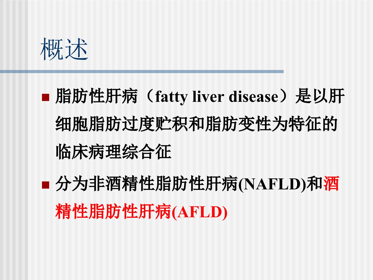 温州医学院附二院消化内科林李淼医生介绍了脂肪性肝病其以肝细胞脂肪过度贮积和脂肪变性为特征分为非酒精性(NAFLD)和酒精性(AFLD)两类。NAFLD指非酒精和其他明确肝损害因素所致的弥漫性肝细胞大泡性脂肪变包括单纯性脂肪肝、脂肪性肝炎、肝纤维化和肝硬化病因涉及肥胖、糖尿病等大泡性肝细胞脂肪变性为其病理特征。确诊主要依靠肝穿刺活组织检查治疗针对原发病和危险因素控制饮食、增加运动是治疗肥胖相关NAFLD的最佳措施。AFLD则是长期大量饮酒导致的慢性肝病包括脂肪肝、肝炎、肝纤维化和肝硬化。其发病与乙醇代谢、毒性作用、氧应激等相关危险因素包括饮酒习惯、遗传基因等。AFLD病理也以大泡性肝细胞脂肪变性为主。治疗原则为戒酒和营养支持必要时进行药物治疗和肝移植。