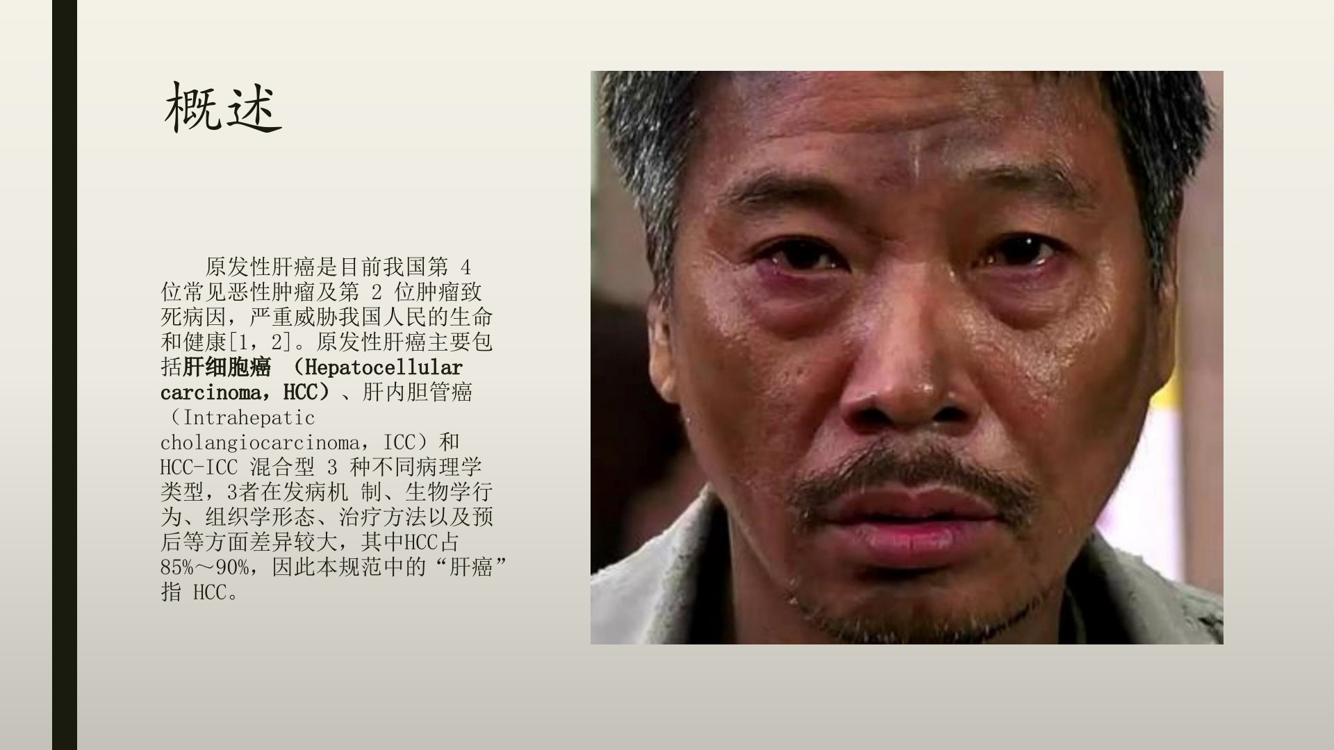 《原发性肝癌诊疗规范(2019年版)》摘要原发性肝癌是我国常见恶性肿瘤和主要肿瘤致死病因主要包括肝细胞癌(HCC)、肝内胆管癌(ICC)和HCCICC混合型其中HCC占比高本规范“肝癌”主要指HCC。1筛查诊断:高危人群(有HBV、HCV感染、过度饮酒等人群尤其40岁以上男性)需定期筛查借助肝脏超声和血清AFP检查建议至少每6个月一次。影像学检查、血液学分子标志物(如血清AFP等)可辅助诊断。有典型影像学特征的肝占位性病变通常无需穿刺活检缺乏典型特征的需穿刺活检。2分期:采用PS评分、肝功能ChildPugh分级法及中国肝癌分期方案(CNLC)进行分期。3治疗:外科治疗:肝切除术、肝移植术是重要手段肝切除术有彻底性、安全性原则不同分期肝癌适应证不同。局部消融治疗:CNLCIa期及部分Ib期适用常见消融手段有RFA、MWA、PEI等。经动脉化疗栓塞术:是非手术治疗常用方法有适应证和禁忌证分TAI、TAE、TACE三类术后有不良反应和并发症。放射治疗:分外放疗和内放疗不同分期肝癌适应证不同有禁忌证和主要并发症。系统治疗:分姑息一线、二线系统治疗有适应证和相对禁忌证介绍了常用药物及用法。其他