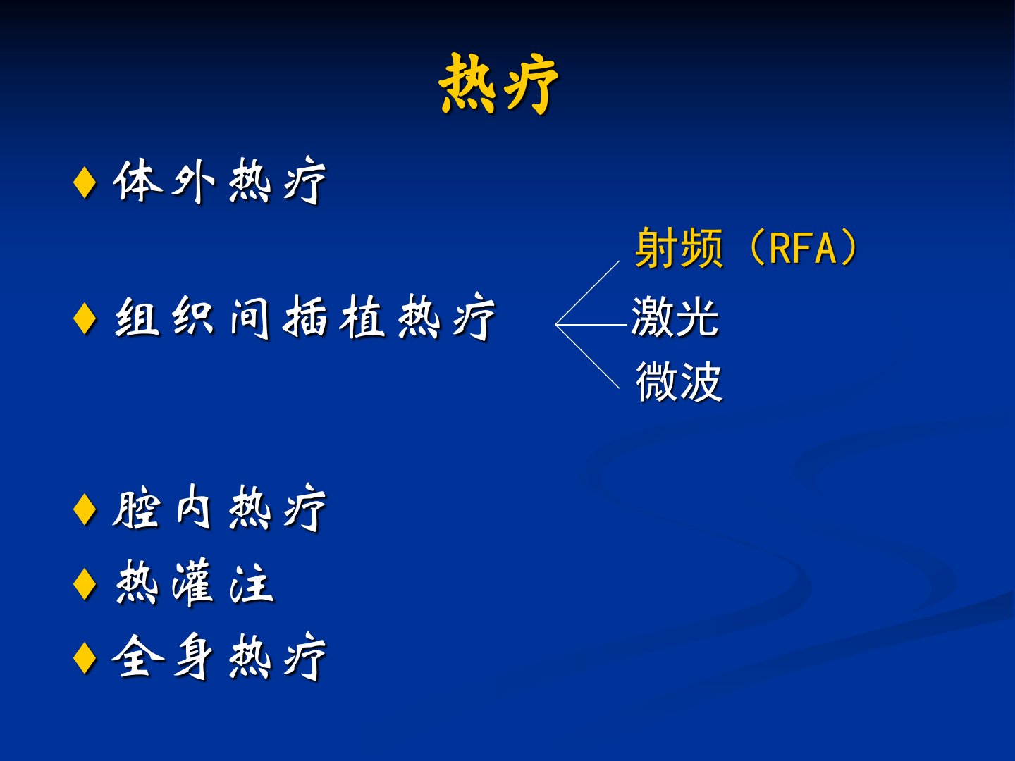 复旦大学附属中山医院放射科陈颐医生介绍了射频消融(RFA)治疗原发性肝癌的相关内容。非手术疗法在原发性肝癌治疗中占据重要地位其中RFA是重要方法之一。RFA通过60C100C的高温杀灭癌细胞导致其凝固性坏死。RFA有经皮、腹腔镜和开腹三种治疗途径各有特点。RFA最佳适应症为病灶直径小于4cm、数目不超过3个且无肝外转移可达到根治效果。禁忌症包括严重凝血功能障碍、肝门区肿瘤等。RFA治疗肝脏肿瘤有轻微和严重两类并发症死亡率为03半数因正常组织器官热损伤产生严重并发症所致。RFA的疗效与电极针类型和技术改良有关伞形电极针效果优于单电极针。脉冲RFA可扩大治疗范围阻断血流可提高疗效注射离子型溶液可增强热效应。与其它非手术治疗方法相比RFA有优势。治疗范围小仍是RFA面临的主要问题未来可结合其他疗法提高治疗效果。