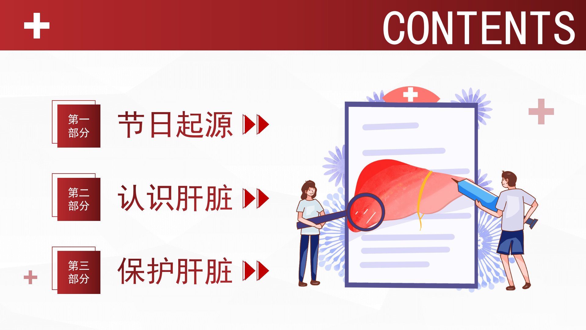 全国爱肝日宣传介绍摘要全国爱肝日定于每年3月18日自2001年起全国各地每年在这一天开展爱肝科普公益宣传活动。2020年全国护肝日主题为“参与爱肝行动共创美好前程”。爱肝日标志寓意“天天爱肝人人健康”。肝脏位于腹部右上方是人体内最大的内脏器官承担着分泌胆汁、调节新陈代谢、解毒、造血和凝血等重要功能。肝脏疾病包括感染、占位、代谢障碍、中毒性肝病、自身免疫性、先天性或遗传性肝病以及肝硬化等多种类型。为保护肝脏需控制体重均衡饮食并规律运动;避免不必要的输血、打针等行为;不喝生水、不生食海鲜必要时注射疫苗;避免酗酒;不自行服用药物有肝病就医时告知医师用药情况;不抽烟;保证充足睡眠避免熬夜以呵护我们的肝脏。