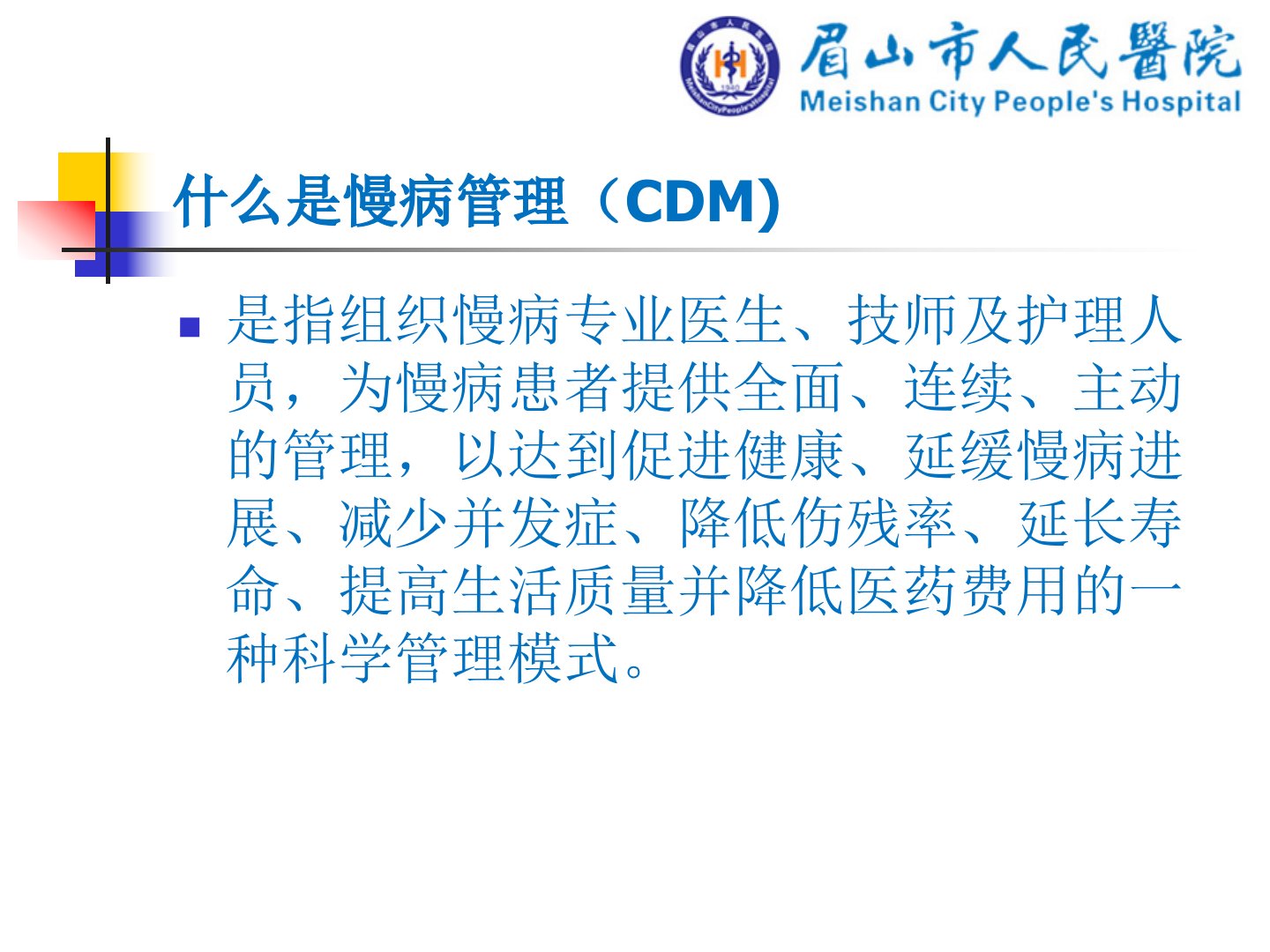 眉山市人民医院消化内科介绍了慢性病管理(CDM):CDM指组织专业医生、技师及护理人员为慢病患者提供全面、连续、主动的管理旨在促进健康、延缓疾病进展、减少并发症、降低伤残率、延长寿命、提高生活质量并降低医药费用。其以病人为中心循证为基础贯彻临床指南实施要点包括有效团队合作、慢性病自我管理、社区支持、质量控制体系、政策支持、建立病人健康档案和信息系统等。我国肝病负担重眉山市有大量乙肝肝硬化及血吸虫肝硬化病员科室肝硬化病员管理现状为重治疗轻管理。科室慢病管理主要针对失代偿期肝硬化病员实施办法包括协助收集病员资料、建立微信群、定期讲座、一对一个性化随访等内容涵盖饮食、运动、心理指导。此举可管理病员防止流失、形成固定病源、增加信任、提高专科知识、便于科研。