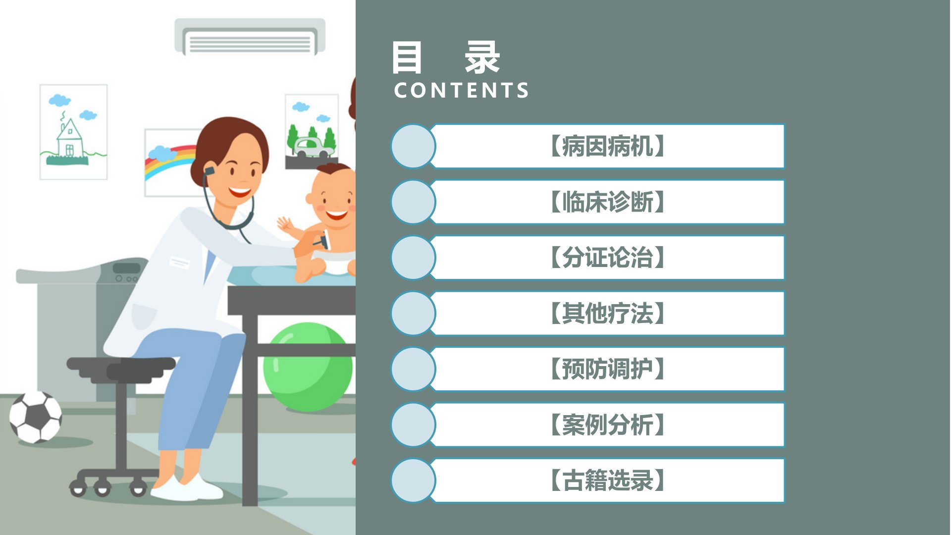 脐部疾病是小儿断脐结扎或护理不当、先天发育异常所致的病证包括脐湿、脐疮、脐血、脐突。脐湿为脐部湿润不干脐疮为脐部红肿流脓脐血为血从脐中溢出脐突为脐部凸起。西医学中脐湿、脐疮被称为新生儿脐炎脐血被称为脐带出血。脐湿、脐疮、脐血与接生断脐、护脐不当有关脐突则与先天因素有关。这些疾病一般预后良好但脐疮处置不当可致重症脐血若与血液病有关则病情较重。病因方面脐湿、脐疮多因断脐后护理不当感受外邪脐血因断脐结扎失宜、胎热内盛或中气不足脐突则与先天发育不全、啼哭叫扰有关。临床诊断包括病史、临床表现和辅助检查。治疗上脐湿、脐疮以祛湿生肌、清热解毒为原则脐血应辨清原因对症治疗脐突采用压脐法外治或手术。预防调护方面需注意新生儿断脐无菌操作、脐部保护、保持清洁干燥等。案例分析中患儿因痰热内羁、气郁冲脐致脐突治以清化痰热、利气解郁而愈。