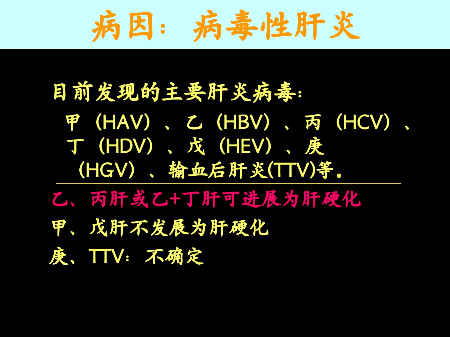 肝硬化摘要肝硬化病因多样包括病毒性肝炎(甲庚型及TTV等肝炎病毒其中乙、丙或乙丁肝可进展为肝硬化)、酒精、非酒精性脂肪肝等。其病程分代偿期与失代偿期:代偿期症状不明显部分有非特异性消化不良症状体征为肝脾轻度肿大肝功能多正常或轻度异常;失代偿期会出现门静脉高压、脾肿大等症状及上消化道出血、自发性细菌性腹膜炎等并发症。治疗遵循综合性原则早期针对病因失代偿期针对并发症门脉高压重点防治消化道出血。一般治疗强调休息与饮食;药物治疗中抗纤维化治疗有意义国内多用活血化瘀软坚中药病毒复制活跃者需抗病毒治疗。腹水治疗要先改善肝功能再通过限制钠水摄入、增加排出、提高胶体渗透压等方式处理顽固性腹水有放腹水输白蛋白等特殊疗法。并发症治疗各有针对性措施门脉高压症可手术肝移植有明确适应证与禁忌证。肝硬化预后与病因、肝功能代偿程度、并发症有关。