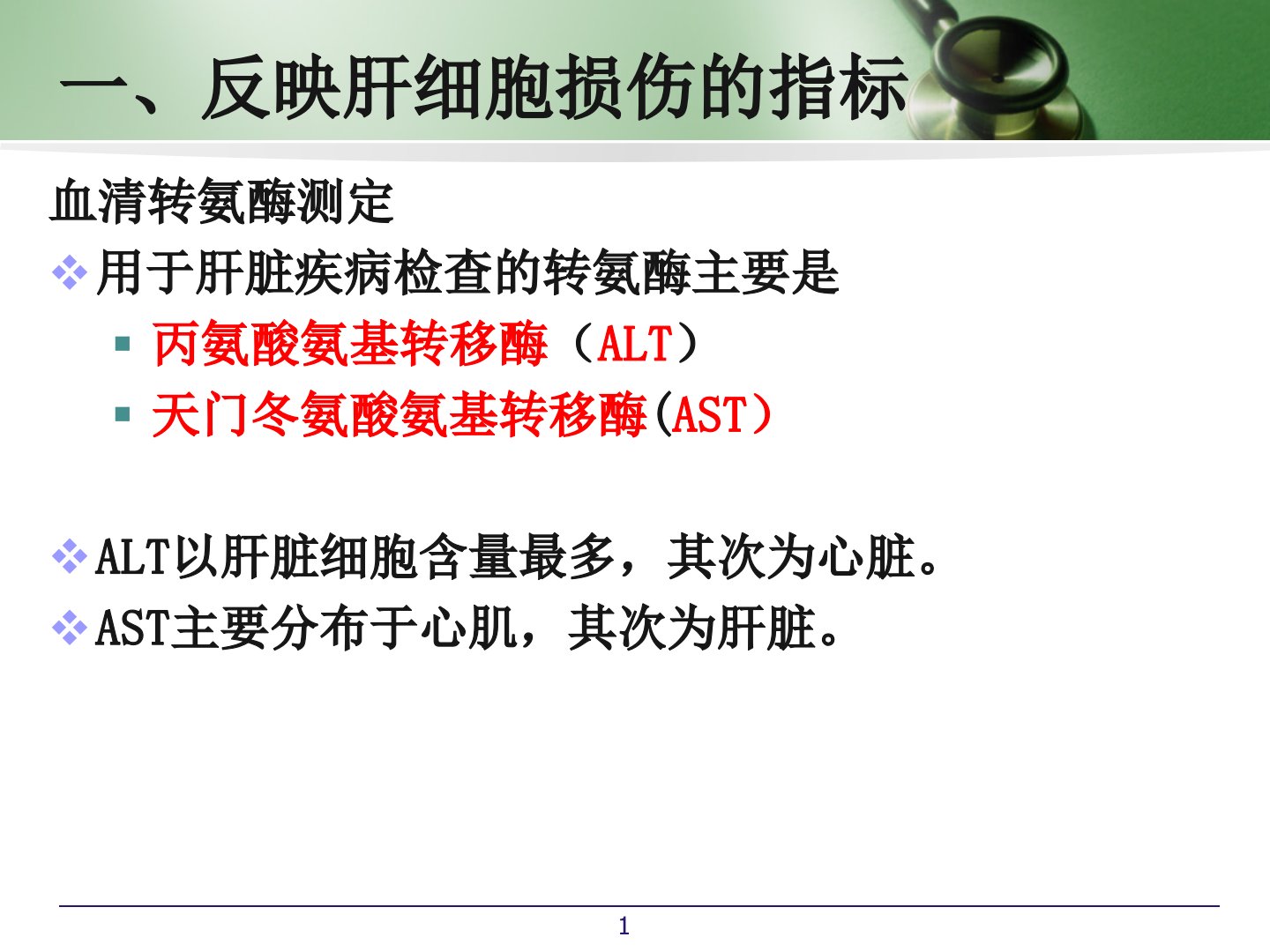 肝脏功能相关实验指标解析一、反映肝细胞损伤的指标血清转氨酶测定是肝脏损伤的敏感指标主要包括丙氨酸氨基转移酶(ALT)和天门冬氨酸氨基转移酶(AST)。1临床意义:急性肝细胞损伤时ALT与AST均显著增高急性肝炎患者ALT降至正常提示病变恢复转氨酶波动则提示转为慢性肝炎。“胆酶分离”现象提示肝细胞严重坏死预后不良。慢性病毒性肝炎、肝硬化或肝癌时血清转氨酶轻度升高或正常AST升高较明显。心血管疾病、骨骼肌病变等其他疾病转氨酶也可增高。服用肝脏毒性药物或饮酒后转氨酶可一过性增高。二、反映肝脏合成、贮备功能的指标1蛋白质代谢检查:血清总蛋白、白蛋白及白蛋白球蛋白比值(AG)测定:血清白蛋白主要由肝脏合成。血清总蛋白、白蛋白、球蛋白的异常可反映肝脏功能状态。AG倒置提示肝功能异常或严重损害。血清蛋白电泳:可分析白蛋白和各类球蛋白的比例用于评估肝脏合成功能及某些疾病的诊断。三、反映胆汁淤积、胆道梗阻的指标1胆红素代谢检查:血清胆红素测定:判断有无黄疸、黄疸程度及演变过程并推断黄疸病因。血清碱性磷酸酶及其同工酶测定:ALP在大多数肝胆疾病时都升高在肝癌和胆道梗阻时最高;在骨骼疾病时也升高。谷氨酰转移