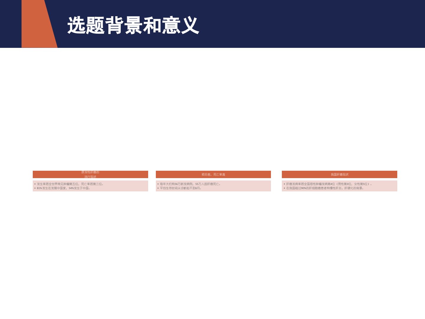 《甘肃地区原发性肝癌筛查及早诊早治模式的创新性研究》课题选题背景源于我国肝癌发病率高且年轻化而早期诊断对治疗决策、医疗资源合理利用及患者生存质量提升至关重要。研究现状显示大部分肝癌患者确诊时已属中晚期缺乏有效治疗手段。目前研究方向之一是在高危人群中定期进行肿瘤标志物及影像学检查以提高早期肝癌诊断率。研究内容主要是对甘肃省乙肝、丙肝患者用AFP检测、腹部彩超进行肝癌筛查发现可疑患者进一步检查以明确诊断并分析高危人群中肝癌发病率及不同分期肝癌的检出情况。该研究具有可行性因肝癌高危人群易确定自然病程长有足够长的可检出的临床前期且现有检测手段灵敏度和特异度相对较高有多种有效治疗方法。