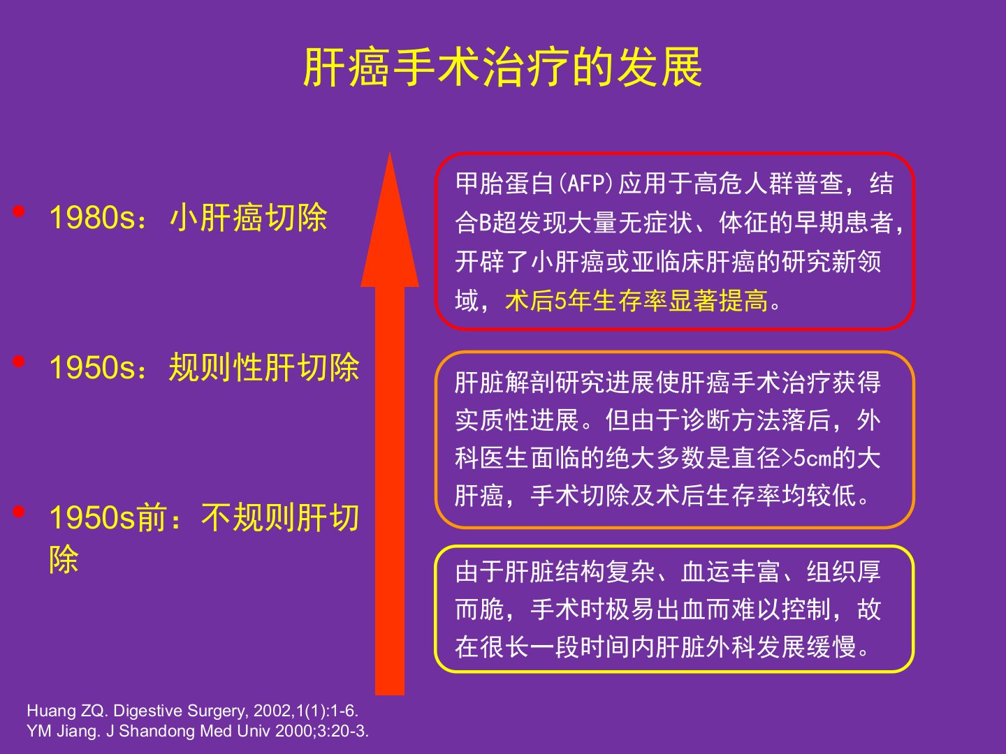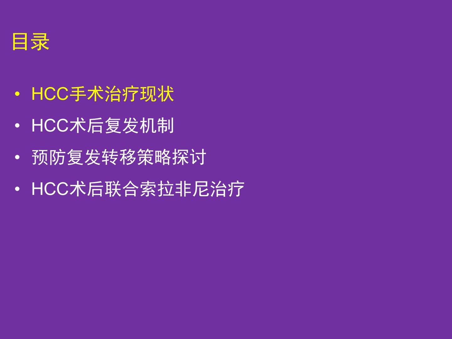 摘要外科治疗是早期肝癌(HCC)的标准治疗肝癌手术治疗后生存率曾明显提高但90年代至今尽管诊断、治疗、手术技术等均有改善患者生存率却未明显提高术后高复发使肝癌外科疗效进入瓶颈期。我国中晚期肝癌患者多见超指南切除术后生存率不理想且非根治性手术存在隐忧术后复发率高。肝癌术后复发原因多样:切缘阳性、淋巴结转移、受累淋巴结多、门脉癌栓累及范围广、合并微血管癌栓、多发性肿瘤结节、术前AFP升高术后未降至正常等都会导致患者生存期短、复发率高。其复发机制包括肿瘤细胞增殖一系列生长因子导致ERK信号通道激活促进血管生成、细胞增殖、转移;术后肿瘤微环境变化缺氧导致HIF1表达上调促进血管生成。目前手术联合局部治疗、全身化疗、干扰素治疗等方案存在不足而索拉非尼具有双重作用可弥补切除术不足能抑制小鼠肝癌切除术后复发及转移降低患者术后复发率提高术后生存期。