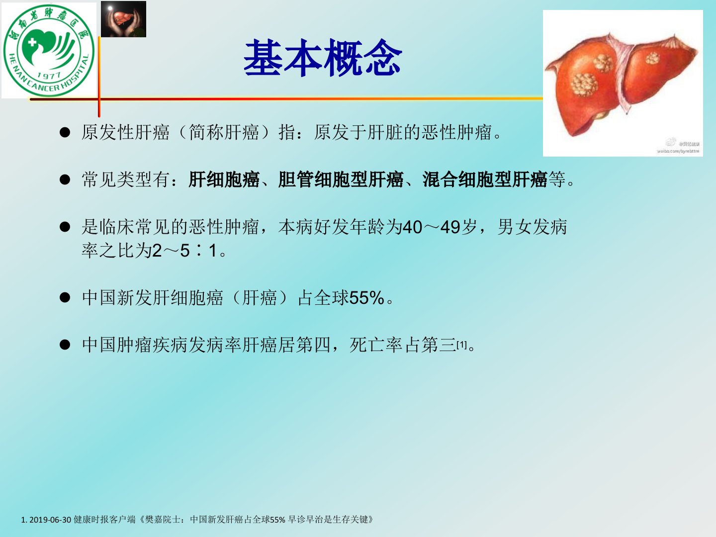 河南省肿瘤医院肝胆胰外科王效谦指出原发性肝癌是原发于肝脏的恶性肿瘤常见类型包括肝细胞癌等好发于4049岁人群男性发病率高于女性。中国新发肝细胞癌占全球55肝癌发病率和死亡率均居高位。肝癌高危因素包括:1病毒性肝炎我国最常见为乙型和丙型肝炎病毒约85的肝细胞癌患者携带乙肝病毒感染标志;2黄曲霉毒素常藏于发霉食物和厨具中;3饮酒和吸烟吸烟可加重肝纤维化程度增强乙肝、丙肝病毒的致癌作用;4肥胖、糖尿病和非酒精性脂肪性肝病;5水污染与药物肝损伤。日常建议包括接种乙肝疫苗、做好母婴阻断、积极治疗病毒性肝炎、注意粮食保存和厨具清洁、戒烟限酒、合理膳食和运动、关注水质安全、避免药物滥用等。此外肝癌高危人群应定期检查每三至六个月复查一次保持积极心态和良好作息。