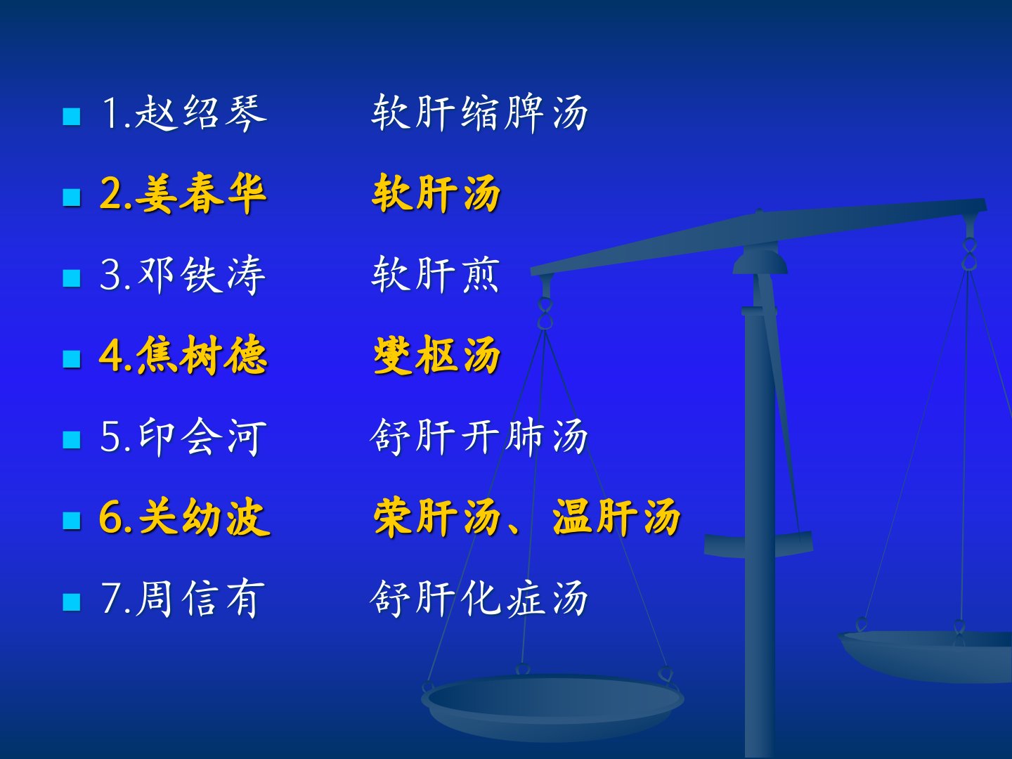 当代名医论治肝硬化策略摘要本文综述了多位当代名医治疗肝硬化的策略包括赵绍琴的软肝缩脾汤、姜春华的软肝汤、邓铁涛的软肝煎等七种方剂。1赵绍琴软肝缩脾汤:以柴胡、黄芩等药疏肝理气、活血利水主治早期肝硬化气滞血瘀者。2姜春华软肝汤:基于“下瘀血汤”加味活血化瘀、软坚散结佐以益气健脾。3邓铁涛软肝煎:健脾护肝补肾活血化瘀软坚适用于肝硬化代偿期。4焦树德燮枢汤:调肝和中燮理枢机活瘀散结针对慢性肝胆病。5印会河舒肝开肺汤:舒肝开肺通利三焦活血消胀治疗肝性腹胀。6关幼波两方:荣肝汤健脾疏肝活血化瘀;温肝汤温补肝肾健脾益气。7周信有舒肝化症汤:舒肝解郁活血化症清解祛邪培补脾肾通治病毒性肝炎。各医家根据肝硬化的不同证型采用疏肝、活血、健脾、补肾等法展现了中医辨证论治的精髓。